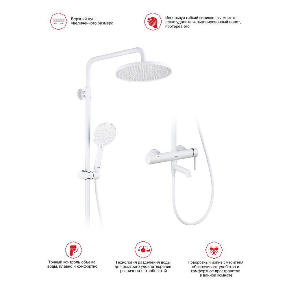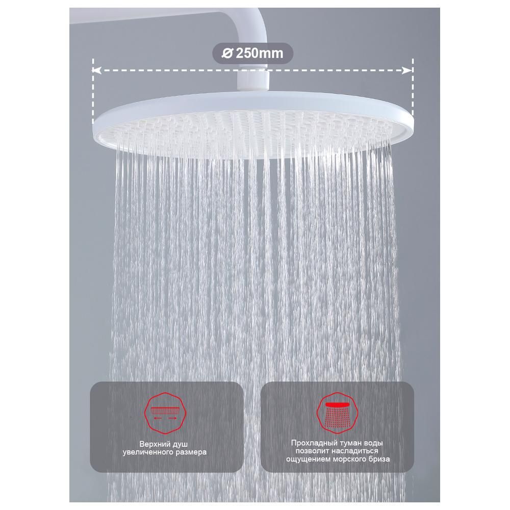 верхний душ, душевая штанга с держателем лейки, ручной душ, смеситель, шланг |
