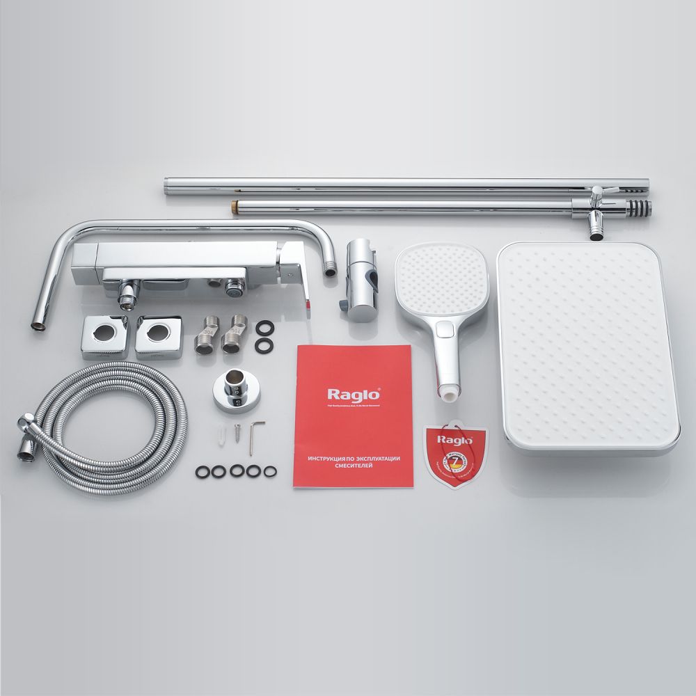 верхний душ, душевая штанга с держателем лейки, ручной душ, смеситель, шланг |