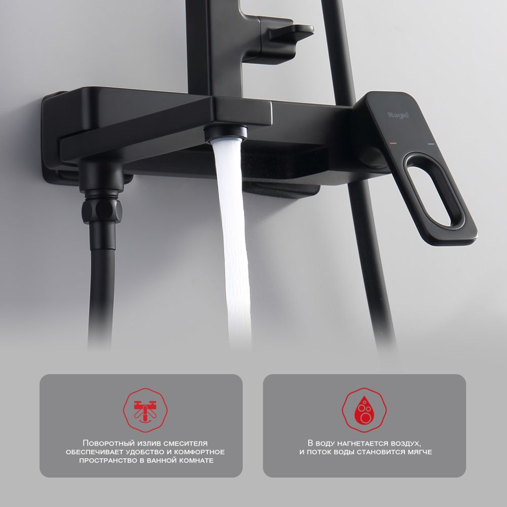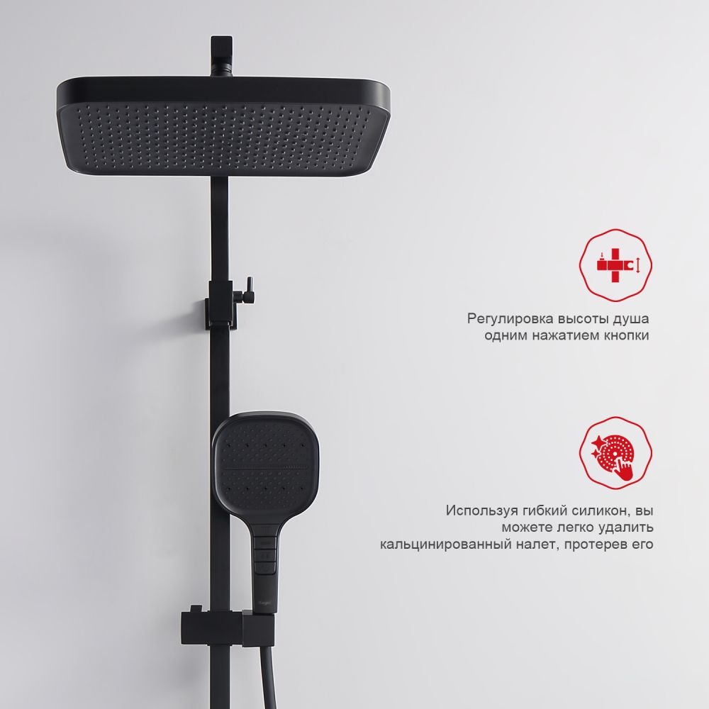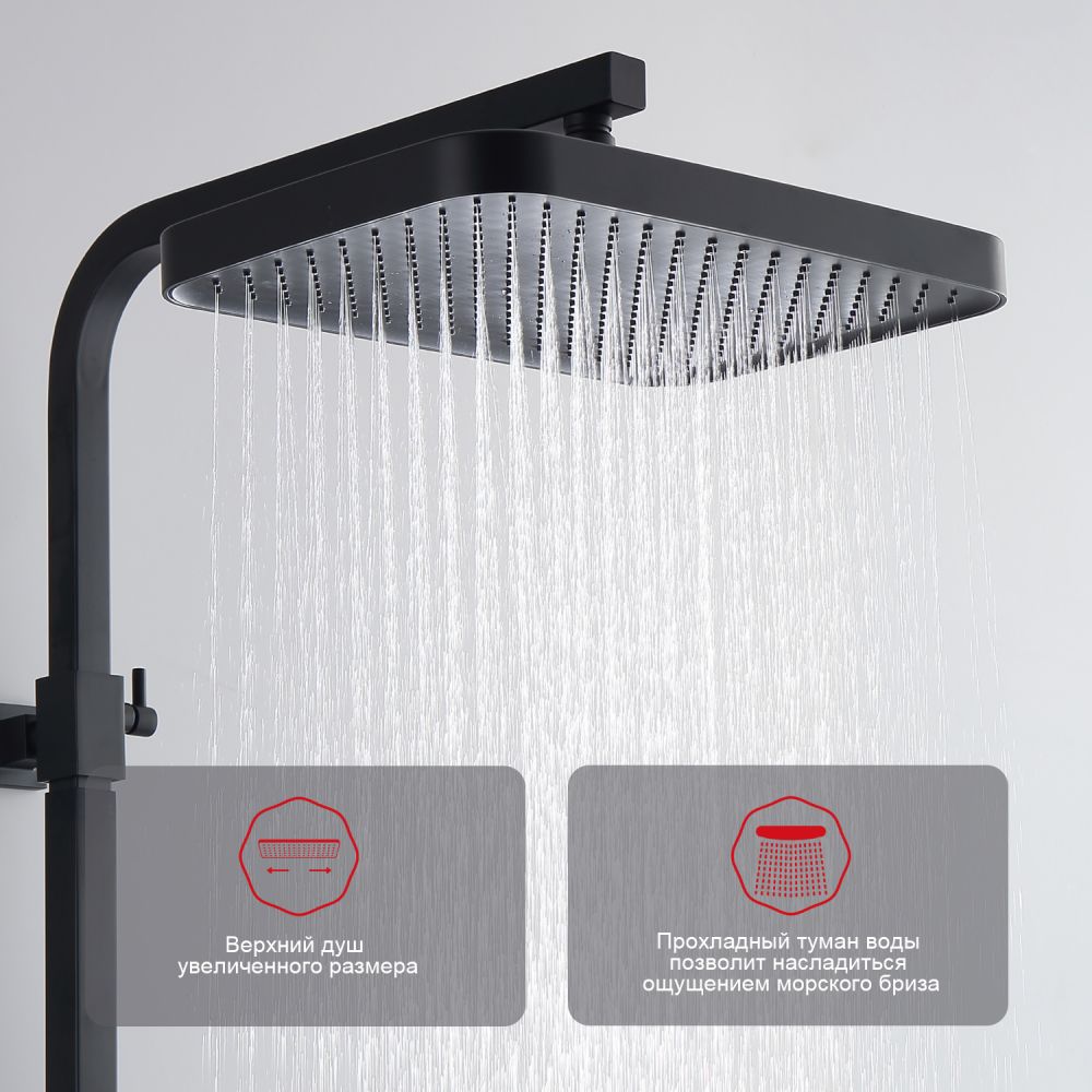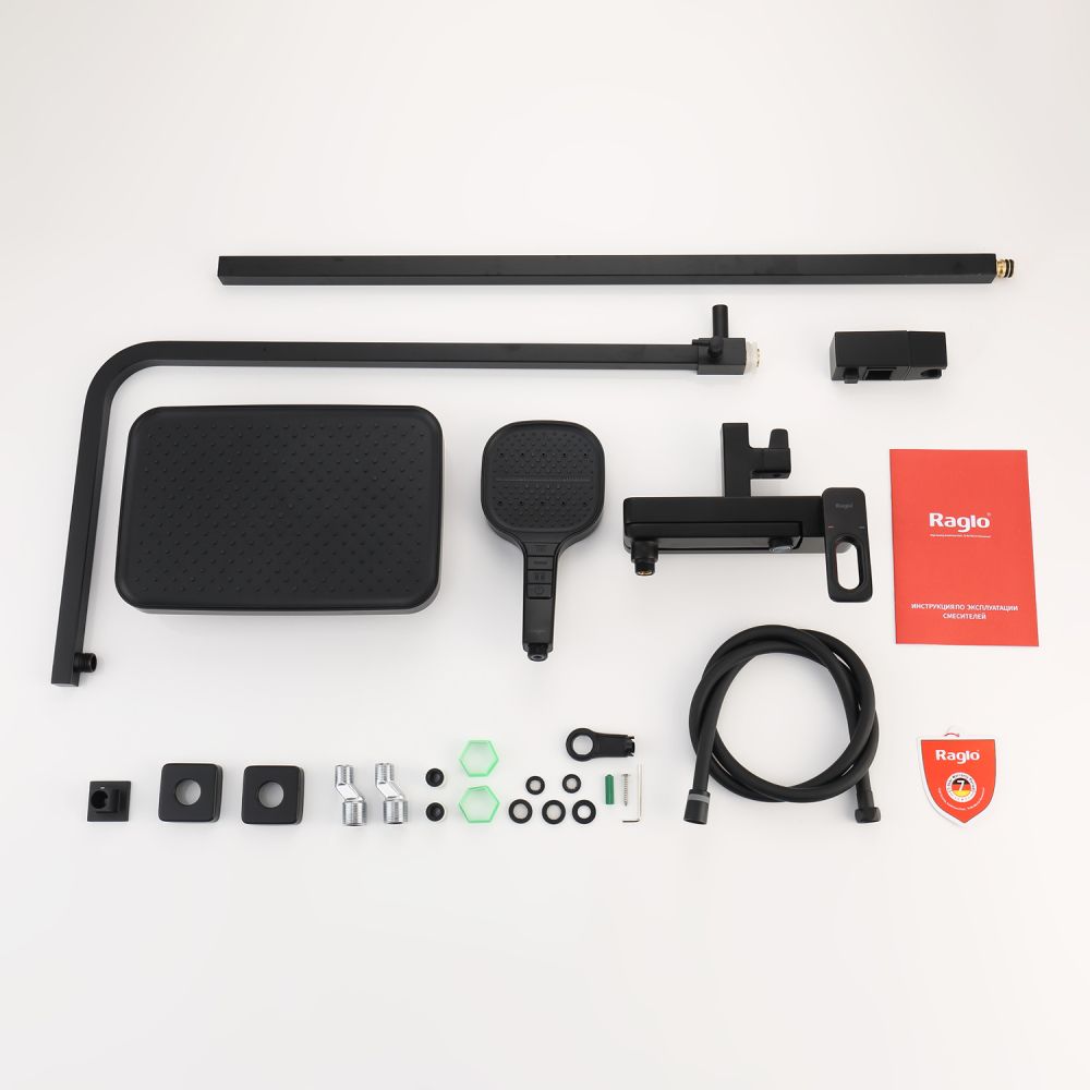 верхний душ, душевая штанга с держателем лейки, ручной душ, смеситель, шланг |