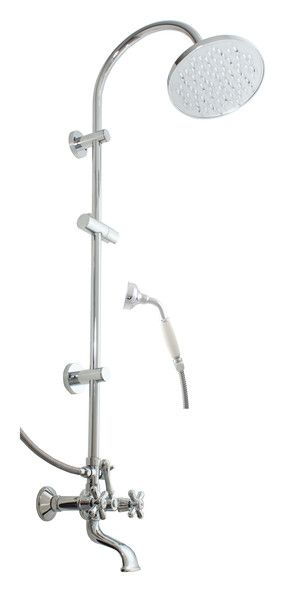Душевая система Rav Slezak Morava Retro MK159.5/3 для ванной. В комплектацию входит смеситель, верхний душ, ручной душ, шланг для душа, держатель душа.