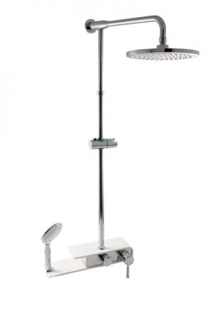 Душевая система с ручной лейкой и верхним душем Rav Slezak Murray MU080.5/1. В комплект входит: Душевая телескопическая штанга длиной 150 см. Ручной душ с резиновыми соплами PS0045CB, Подвижный головной душ PS043CB диаметром 23 см, Керамический переключатель с верхнего на ручной душ.
