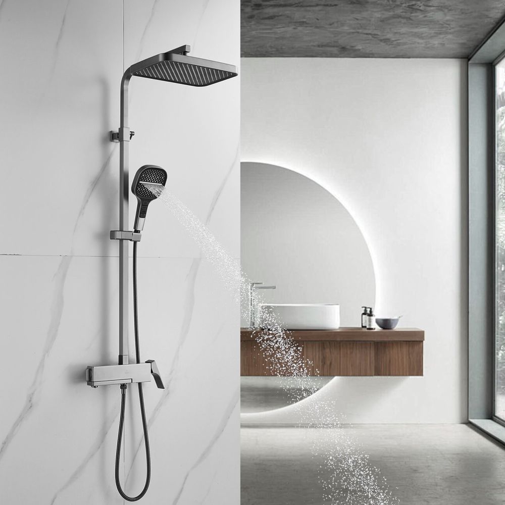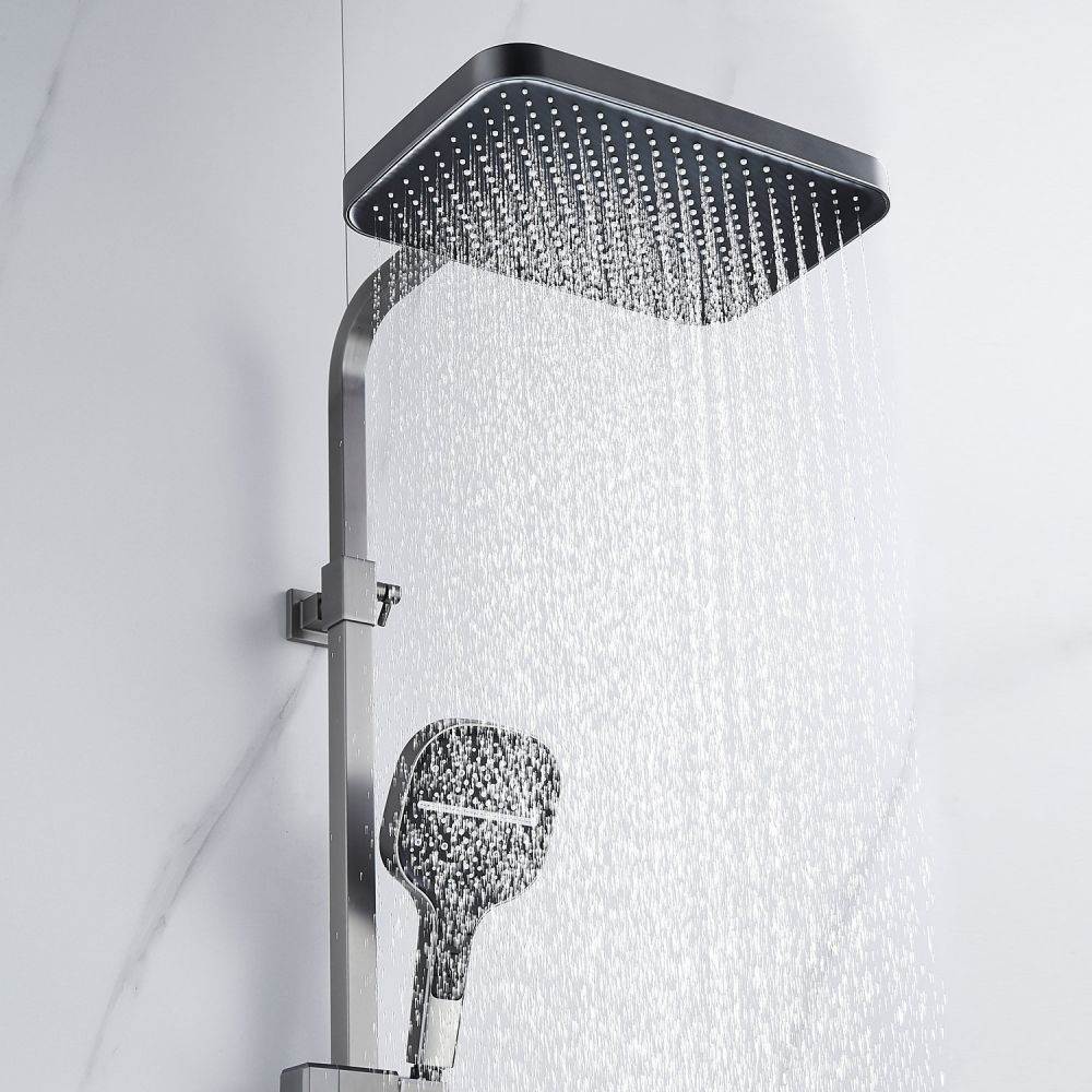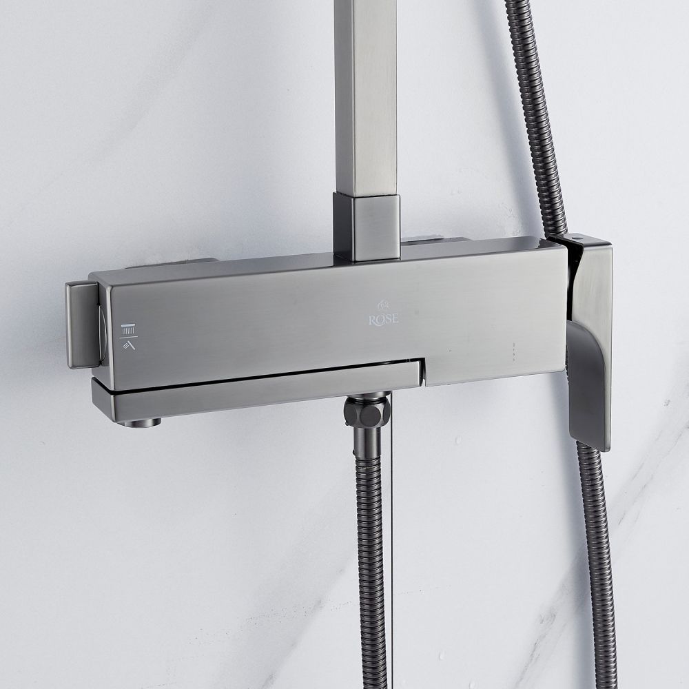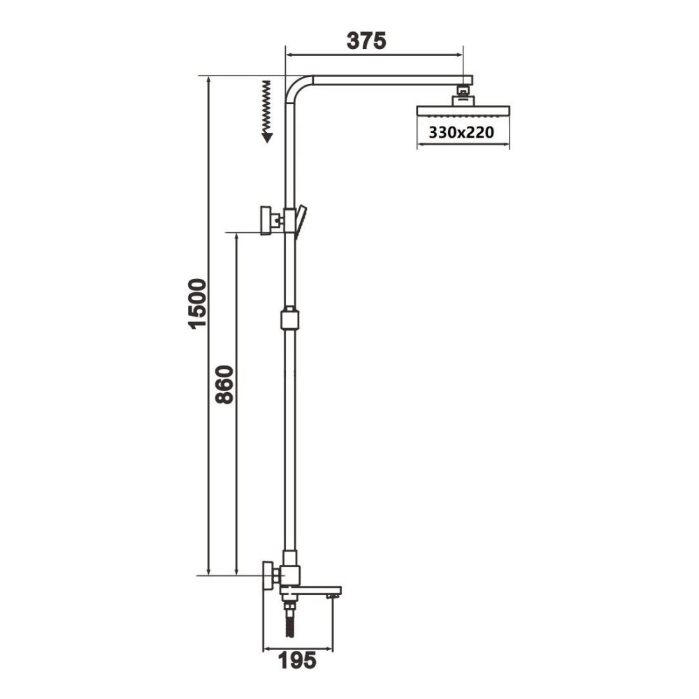 смеситель, верхний душ, штанга с держателем душевой лейки, душевая лейка, шланг, эксцентрики |
