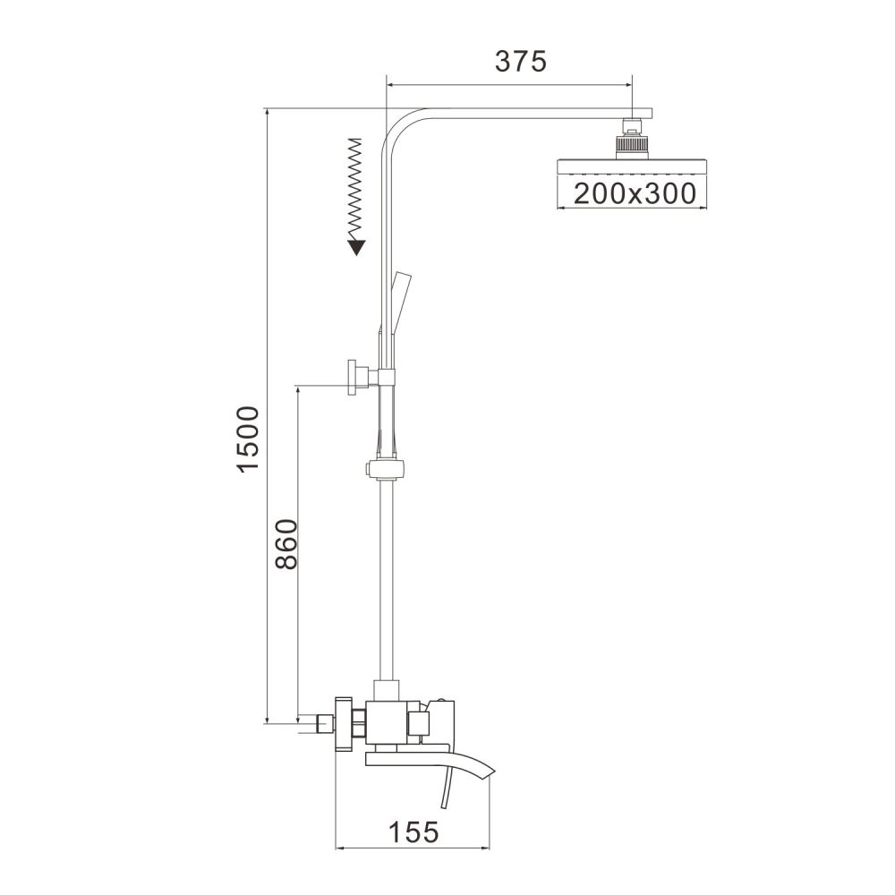 смеситель, верхний душ, штанга с держателем душевой лейки, душевая лейка, шланг, эксцентрики |