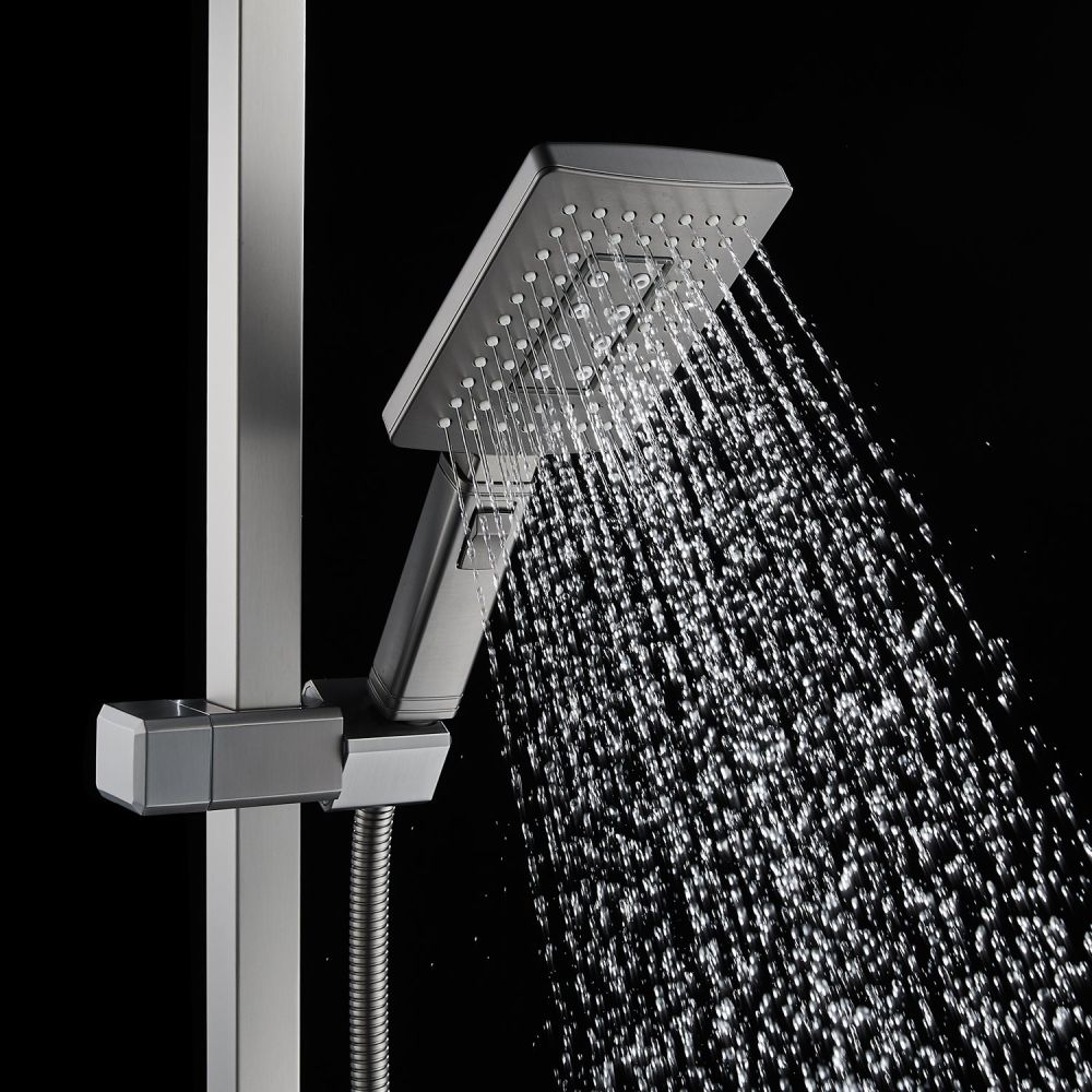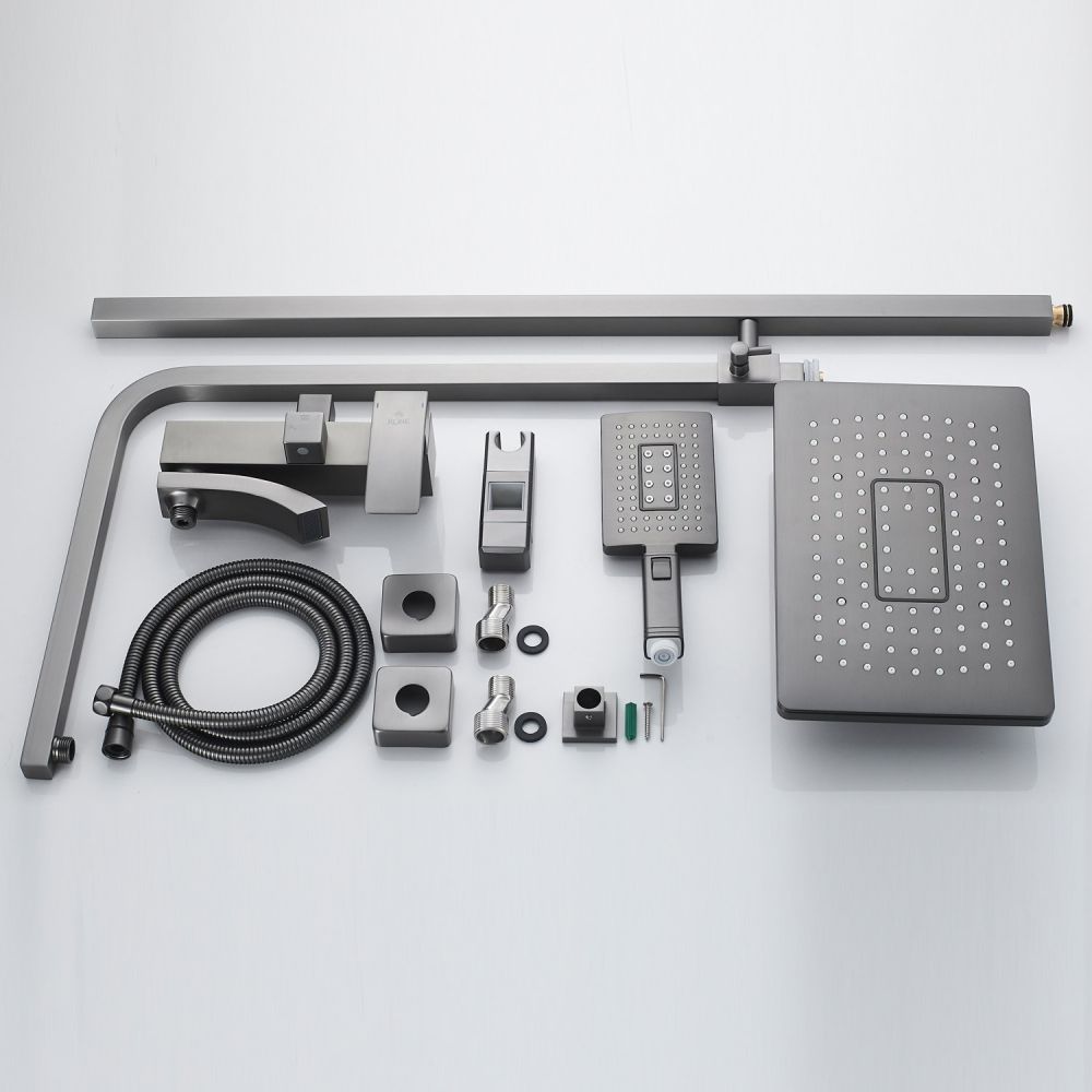 смеситель, верхний душ, штанга с держателем душевой лейки, душевая лейка, шланг, эксцентрики |