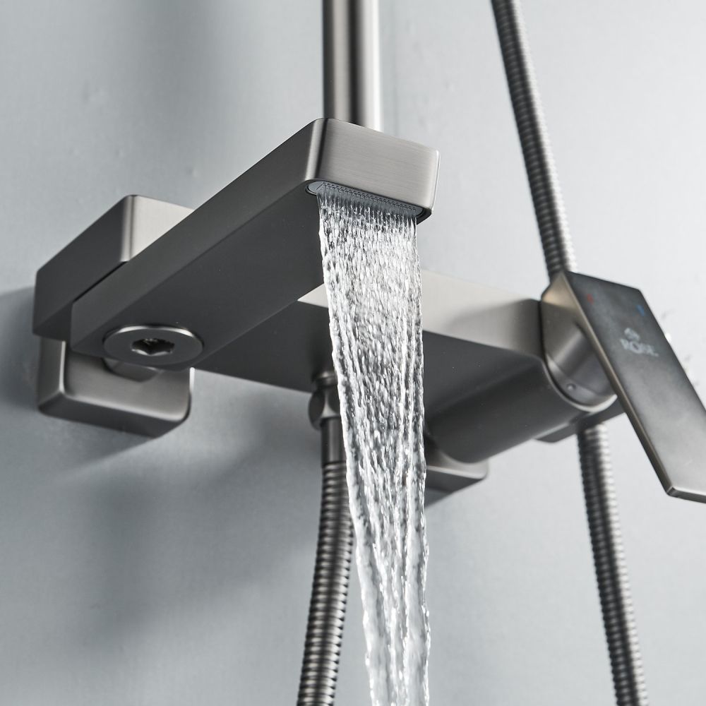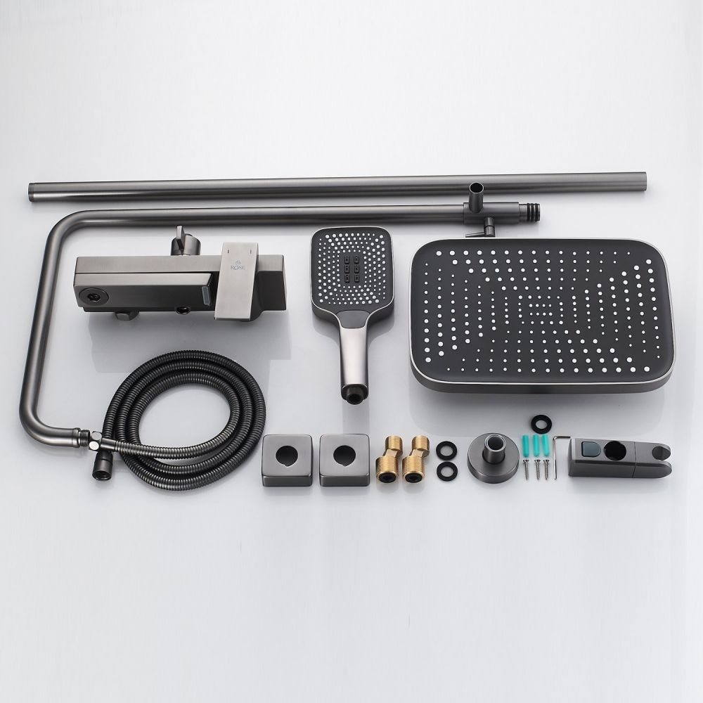 смеситель, верхний душ, штанга с держателем душевой лейки, душевая лейка, шланг, эксцентрики |