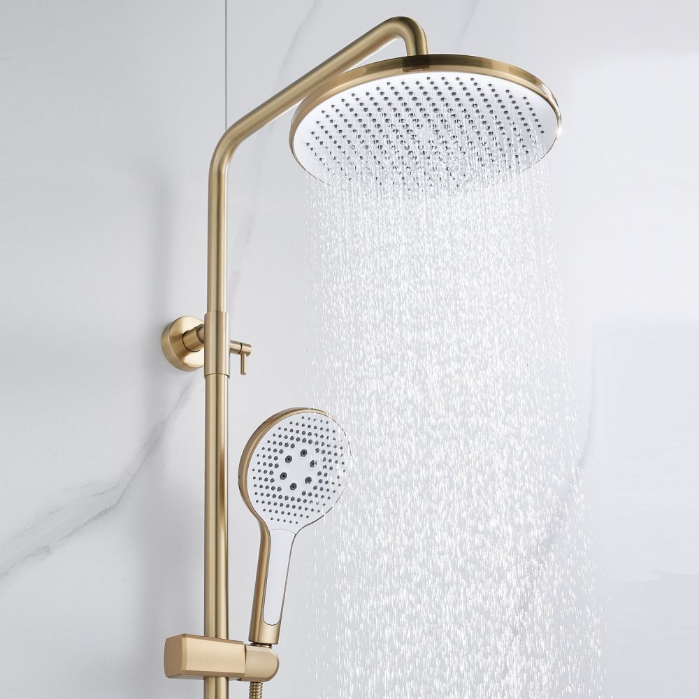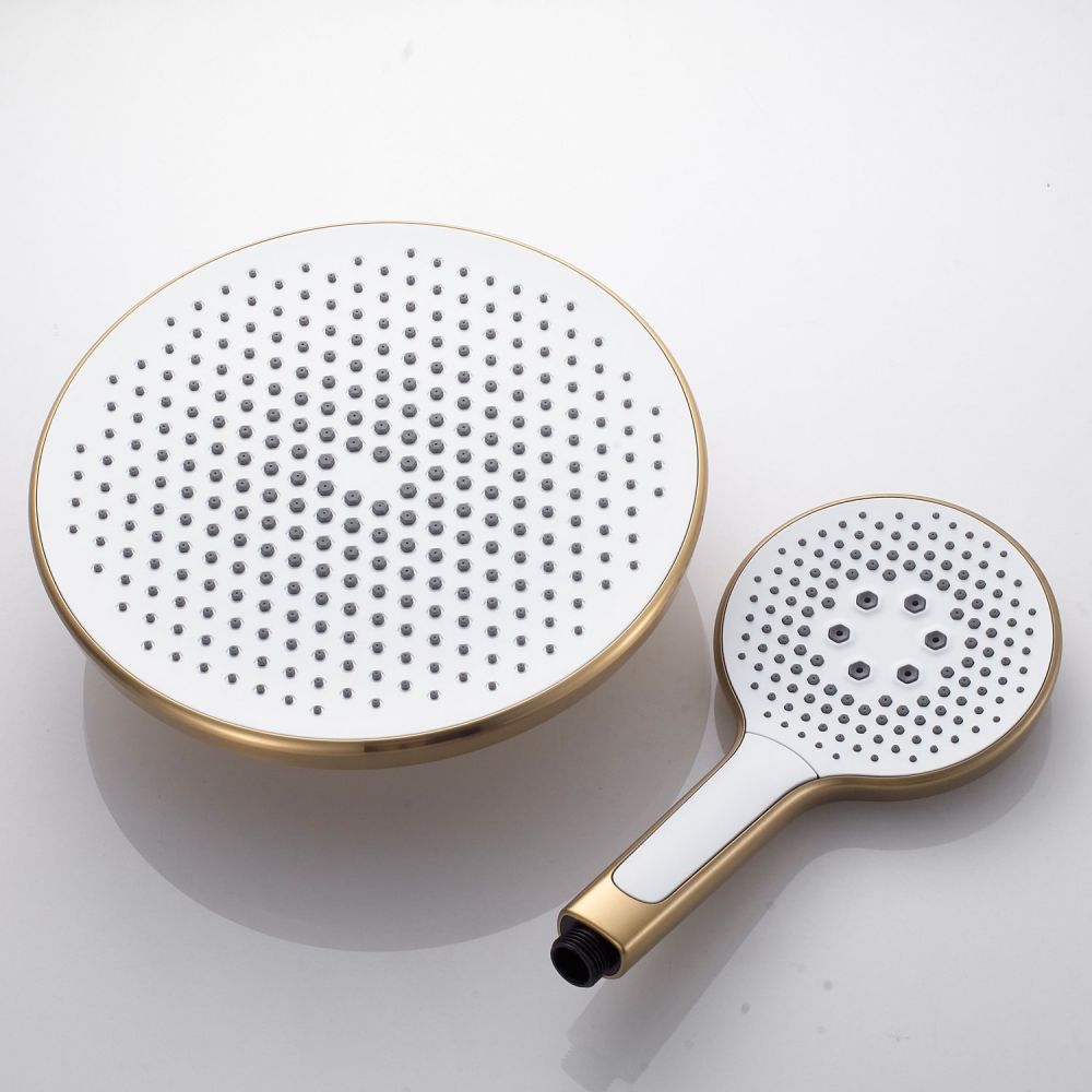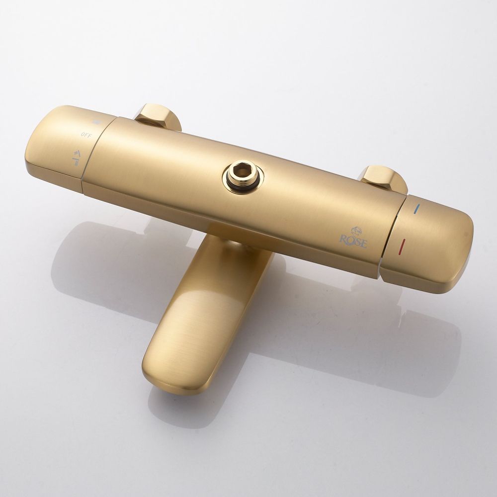 Душевая система Rose R3936G в роскошном цвете "золотой сатин" - идеальный выбор для современного интерьера ванной комнаты. Изготовленная из высококачественной латуни, она обеспечивает прочность и долговечность использования. Верхний душ диаметром 250 мм из ABS-пластика с самоочищающимися силиконовыми форсунками подарит истинное удовольствие от принятия душа благодаря равномерному распределению воды и исключению возможности образования известкового налета. Благодаря регулировке по высоте верхнего душа, каждый член семьи сможет настроить его под свой рост для максимального комфорта.