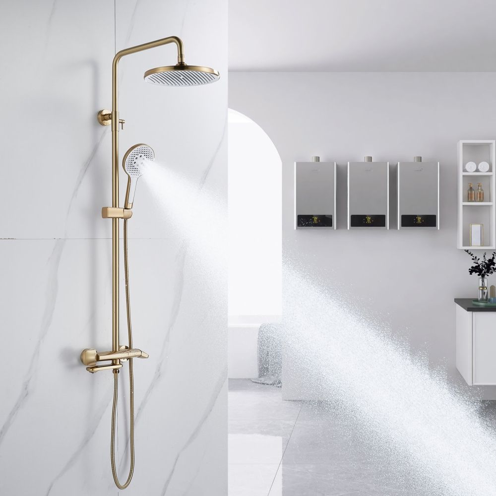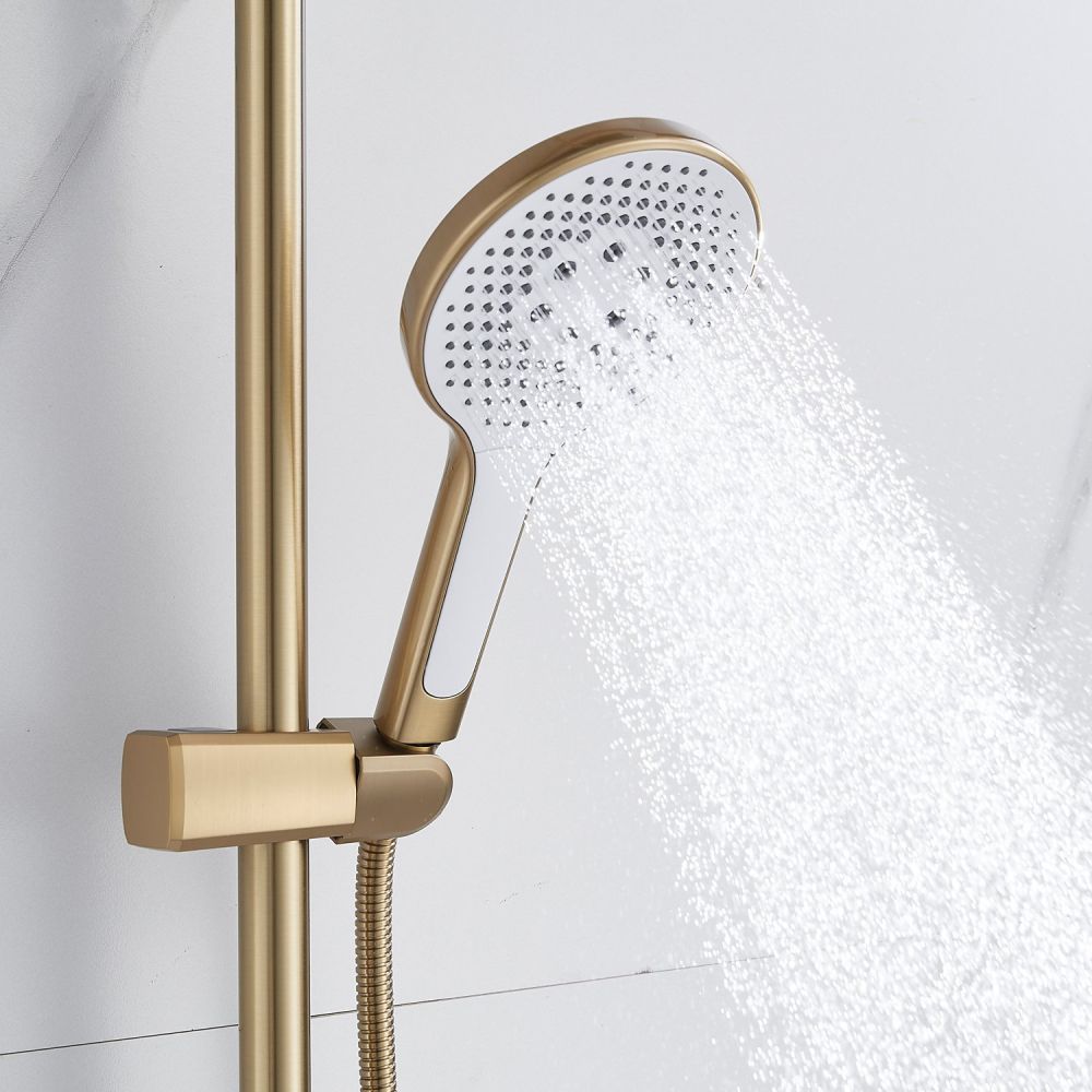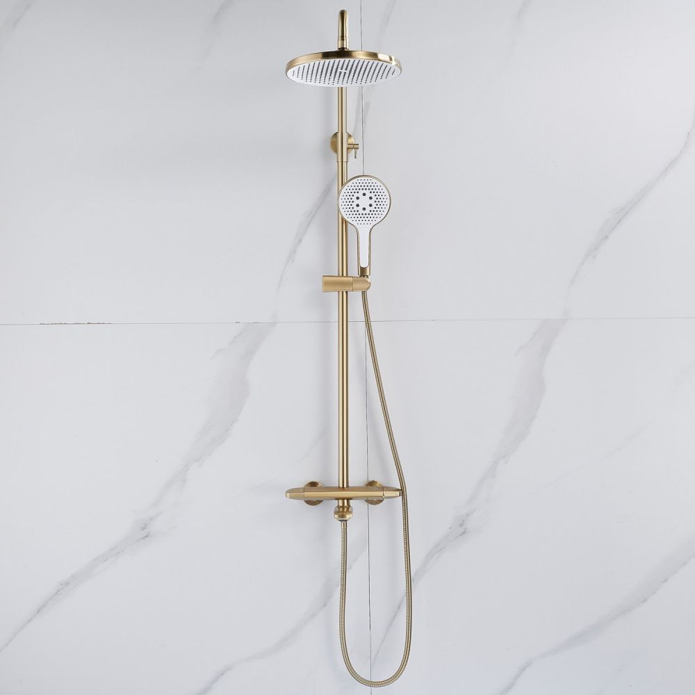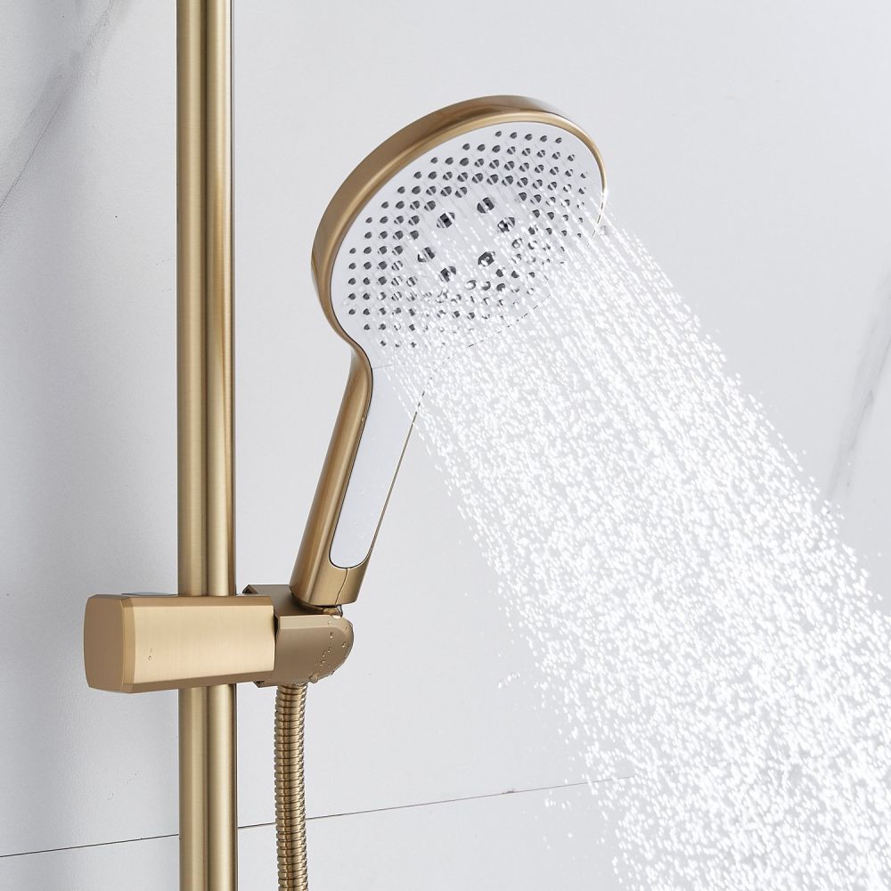 Душевая система Rose R3936G в роскошном цвете "золотой сатин" - идеальный выбор для современного интерьера ванной комнаты. Изготовленная из высококачественной латуни, она обеспечивает прочность и долговечность использования. Верхний душ диаметром 250 мм из ABS-пластика с самоочищающимися силиконовыми форсунками подарит истинное удовольствие от принятия душа благодаря равномерному распределению воды и исключению возможности образования известкового налета. Благодаря регулировке по высоте верхнего душа, каждый член семьи сможет настроить его под свой рост для максимального комфорта.