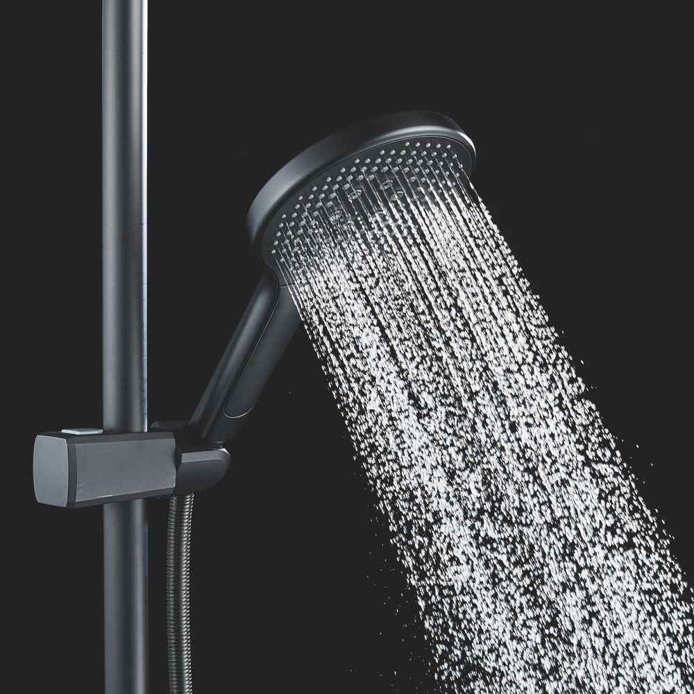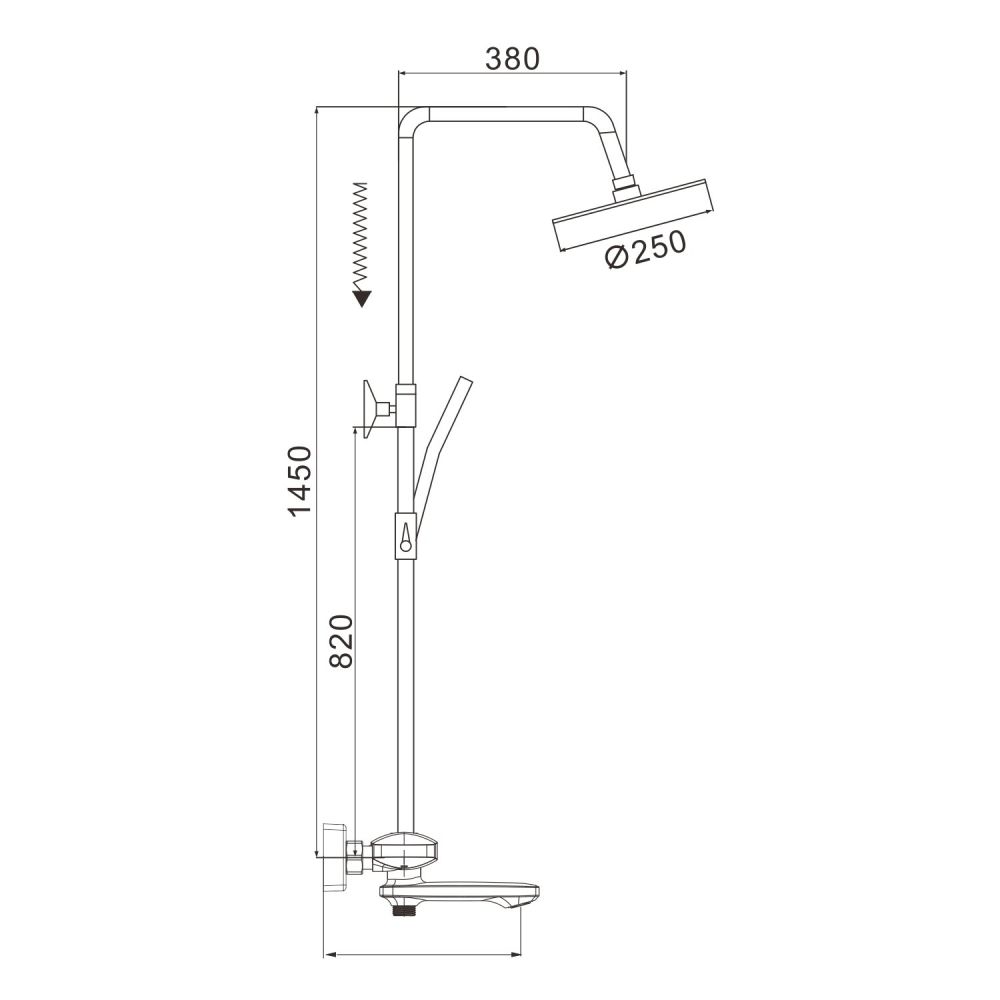 смеситель, верхний душ, штанга с держателем душевой лейки, душевая лейка, шланг, эксцентрики |