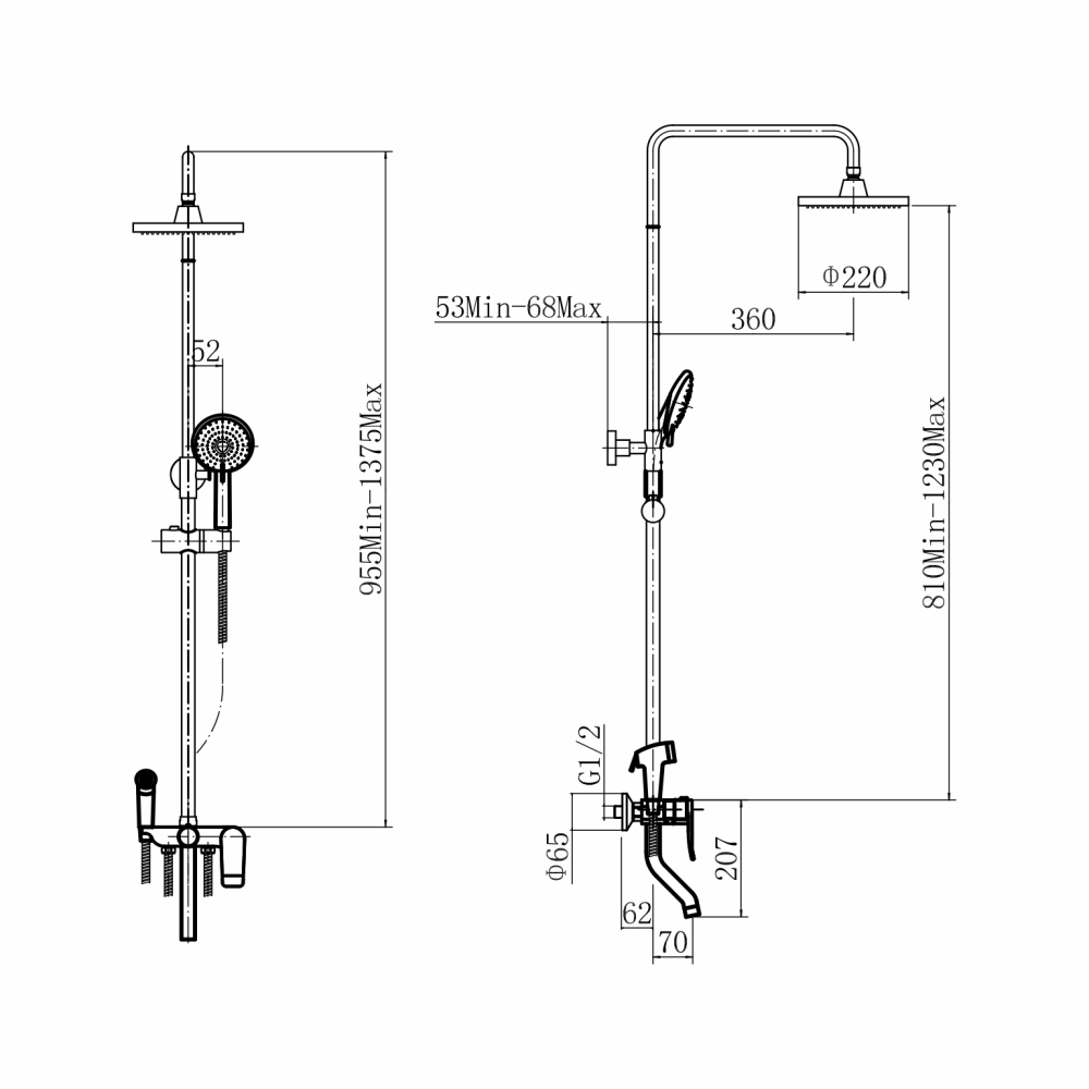 смеситель, верхний душ, штанга, душевая лейка, гигиеническая лейка, шланг, эксцентрики, декоративные чашки |