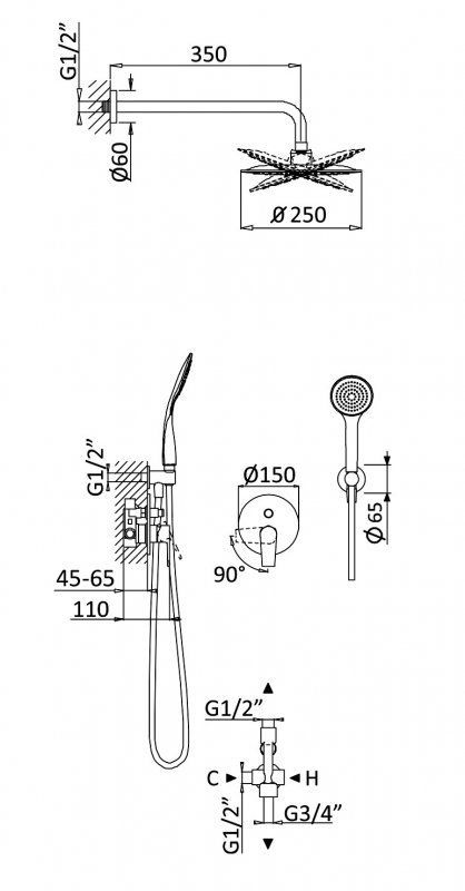 Оснащение: штуцер, держатель для душа,