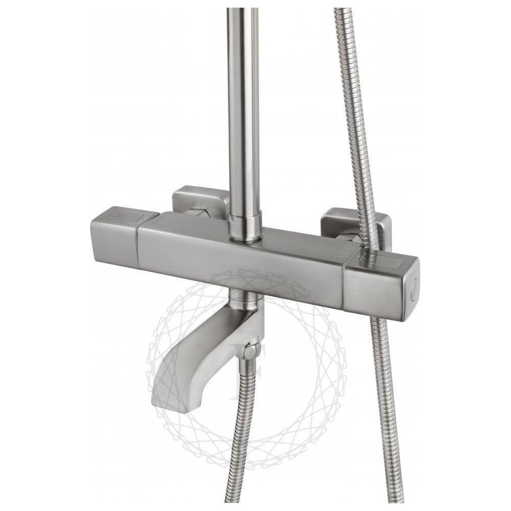 верхний душ, душевая штанга с держателем лейки, ручной душ, смеситель, шланг, эксцентрики, декоративные отражатели |