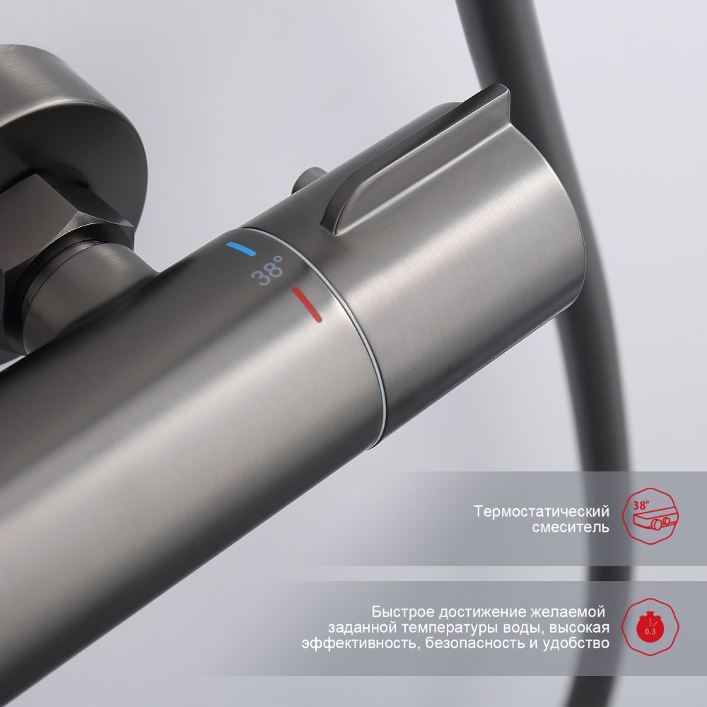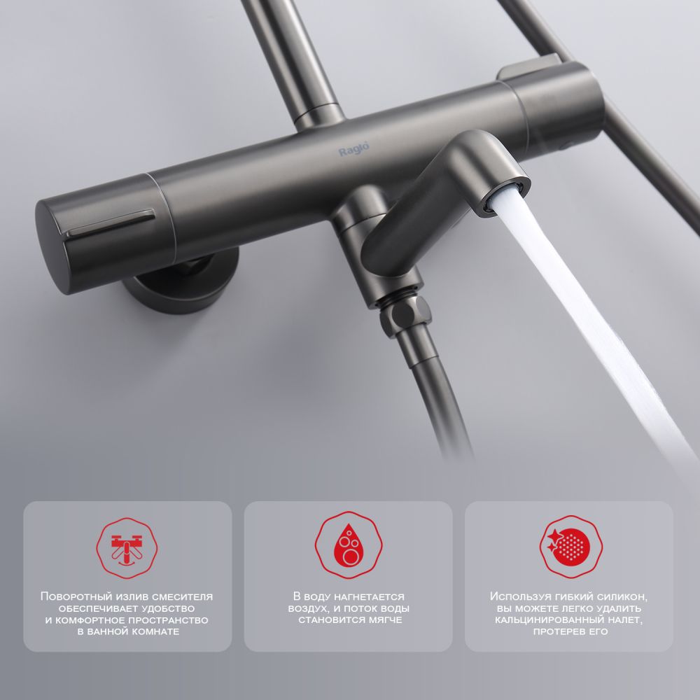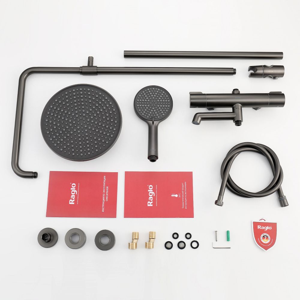 верхний душ, душевая штанга с держателем лейки, ручной душ, смеситель, шланг |