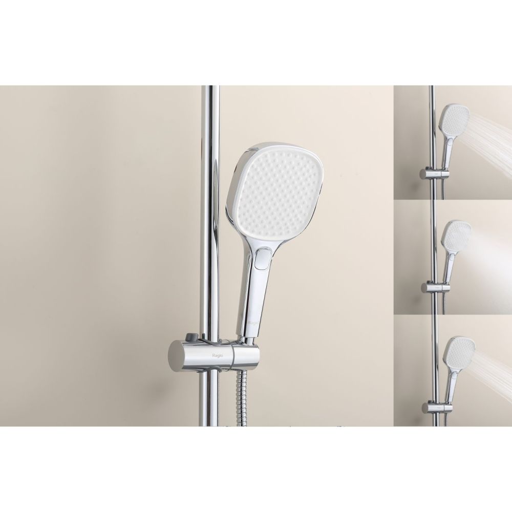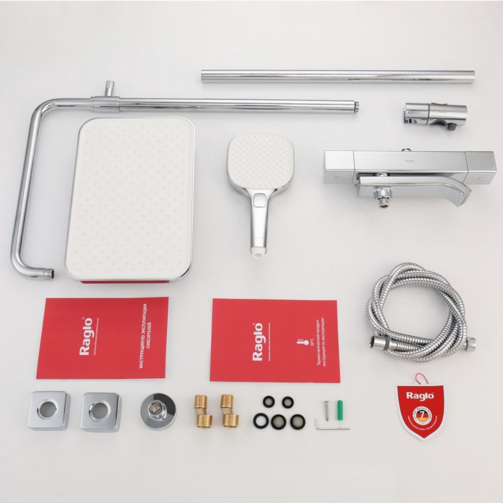 верхний душ, душевая штанга с держателем лейки, ручной душ, смеситель, шланг |