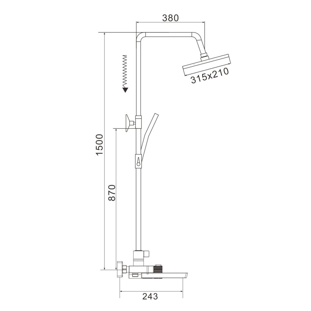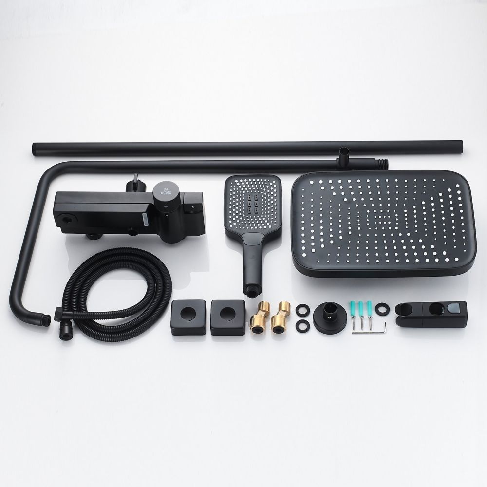 смеситель, верхний душ, штанга с держателем душевой лейки, душевая лейка, шланг, эксцентрики |