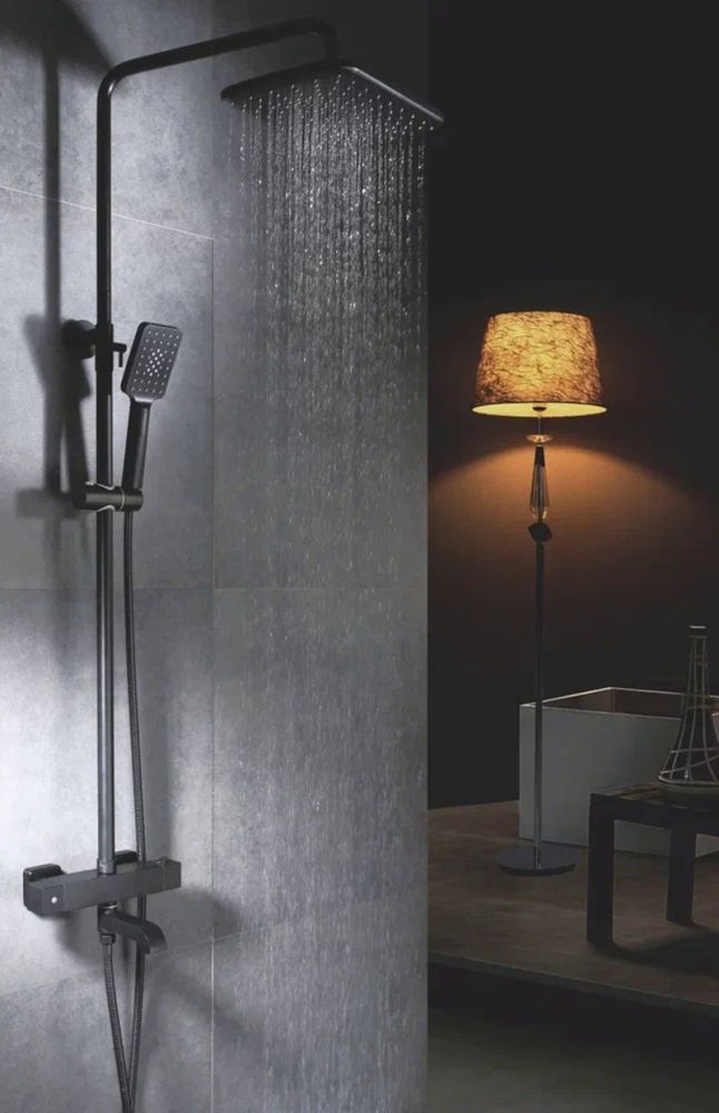 смеситель, верхний душ, штанга с держателем душевой лейки, душевая лейка, шланг, эксцентрики |