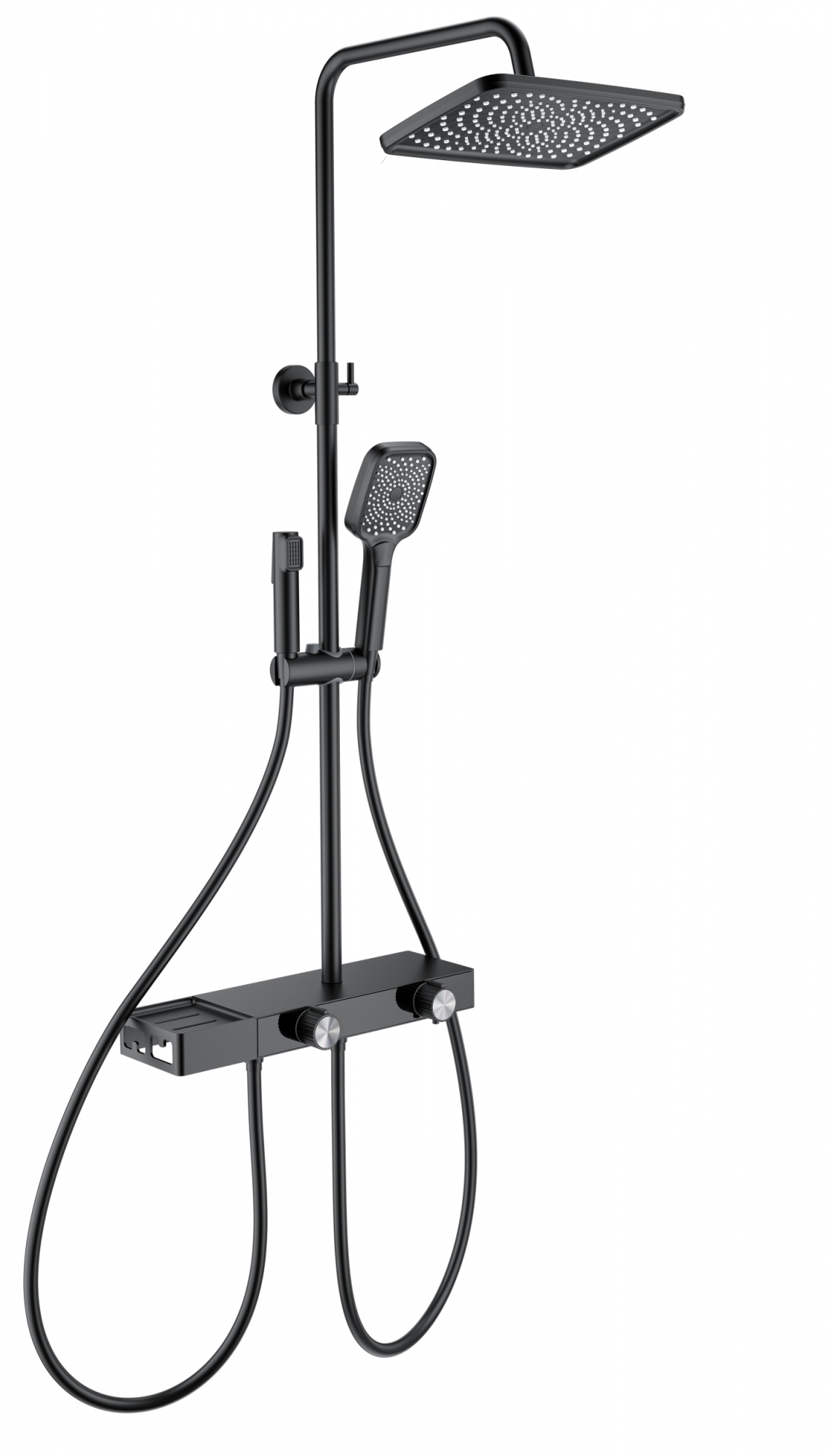 Душевая система с техническим душем WONZON & WOGHAND Shelf, Черный матовый (WW-B4161-MB)