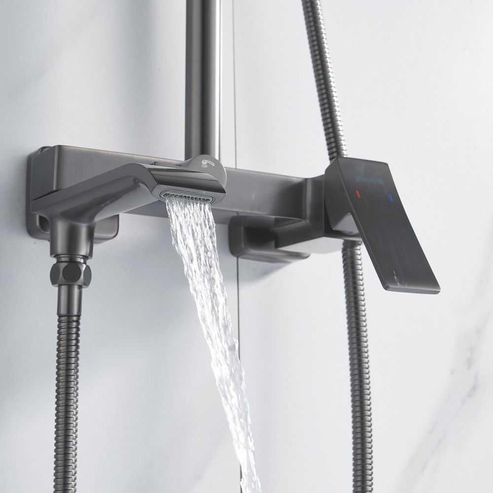 Душевая система Shevanik - идеальный выбор для вашей ванной комнаты! Изготовленная из высококачественной латуни, она обеспечивает прочность и долговечность использования. Верхний душ размером 310x210 мм из ABS-пластика легко регулируется по наклону благодаря встроенному шарниру. Он также оснащен самоочищающимися силиконовыми форсунками, которые защищают его от известкового налета, обеспечивая всегда чистый и сильный поток воды. Ручной душ также изготовлен из ABS-пластика и имеет 3 режима работы. Он легко регулируется по высоте и наклону, позволяя вам выбрать наиболее комфортный для вас режим. Душевая система также оснащена поворотным изливом для ванны, который при необходимости можно сложить для экономии места. Shevanik предоставляет гарантию на свою душевую систему в течение 5 лет, что подтверждает высокое качество и надежность этого продукта. Не упустите возможность обновить вашу ванную комнату с помощью этой стильной и функциональной душевой системы!