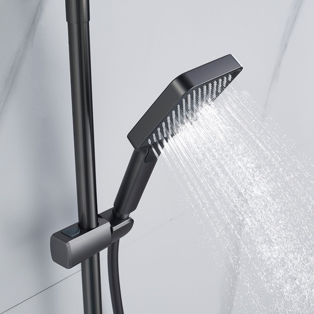 Душевая лейка из ABS пластика с двумя режимами работы также оснащена силиконовыми форсунками, что делает её легкой в уходе. Высота душевой лейки регулируется с помощью держателя на душевой штанге, а телескопическая конструкция штанги позволяет регулировать высоту всей системы, обеспечивая удобство использования для всех членов семьи.