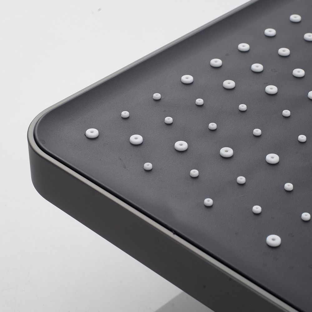Верхний душ из ABS пластика размером 320х210 мм с силиконовыми форсунками, которые легко очищаются от известкового налета, подарит вам роскошные ощущения от душа. Благодаря встроенному шарниру, верхний душ регулируется по наклону вдоль всей оси, подстраиваясь под ваши предпочтения.