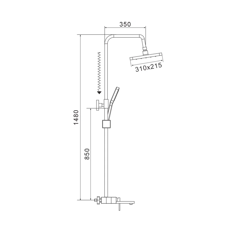 смеситель, верхний душ, штанга, лейка, шланг, эксцентрики, декоративные чашки |