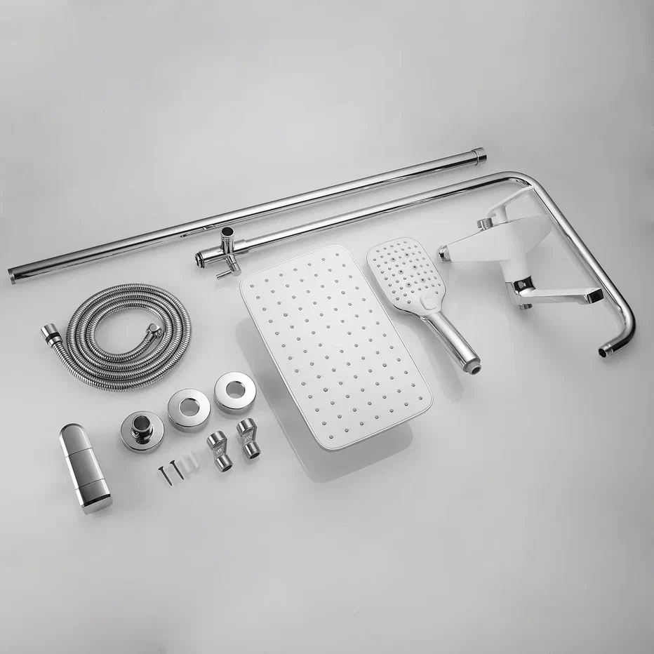 смеситель, верхний душ, штанга, лейка, шланг, эксцентрики, декоративные чашки |