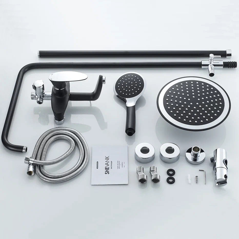 смеситель, верхний душ, штанга, лейка, шланг, эксцентрики, декоративные чашки |