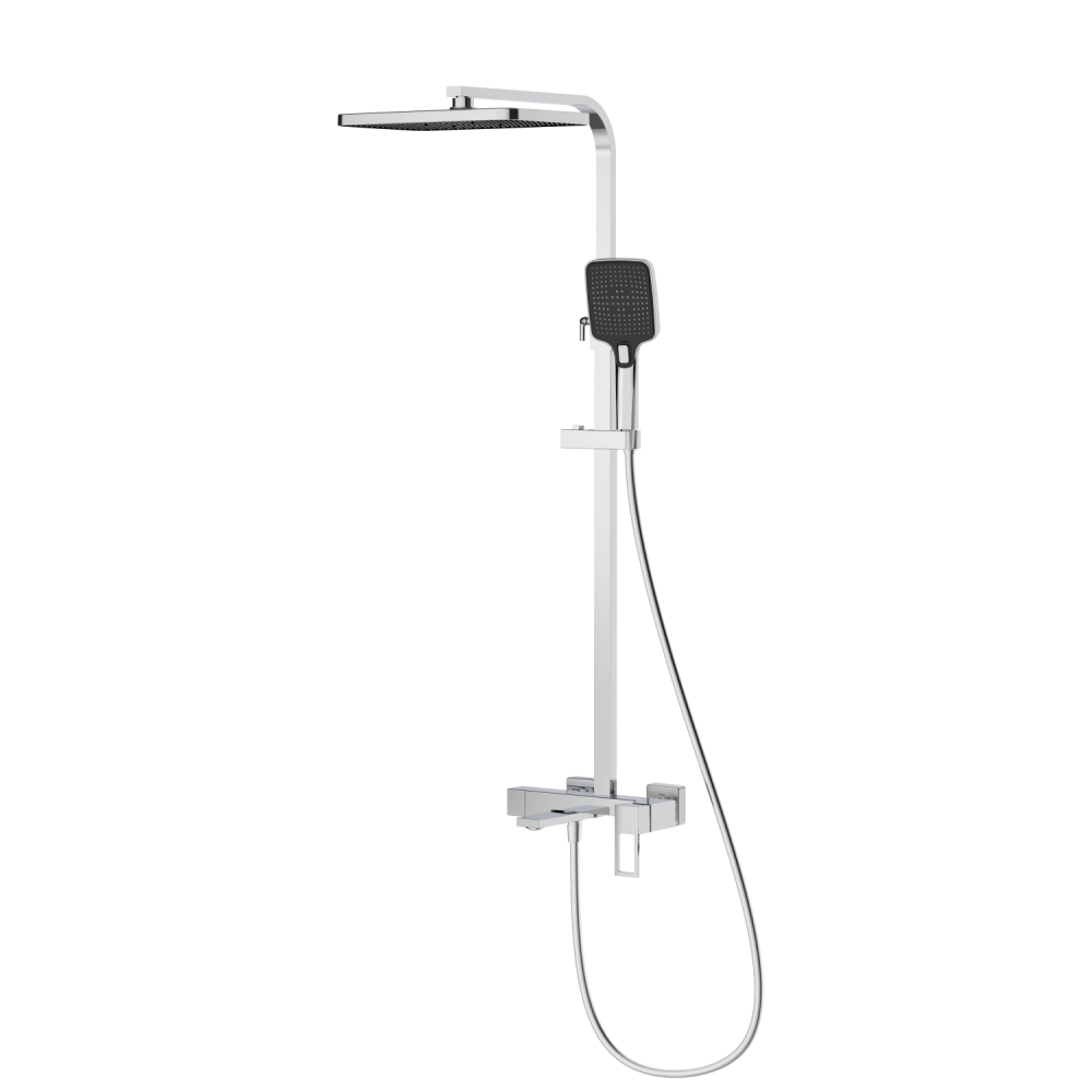 смеситель, эксцентрики-2шт, декоративная шайба (отражатель)-2шт, штанга, крепление для штанги, кронштейн для верхнего душа, шланг душевой 1,5м PVC, лейка душевая 3 режима, держатель душевой лейки, паспорт изделия, брендовый пакет |
