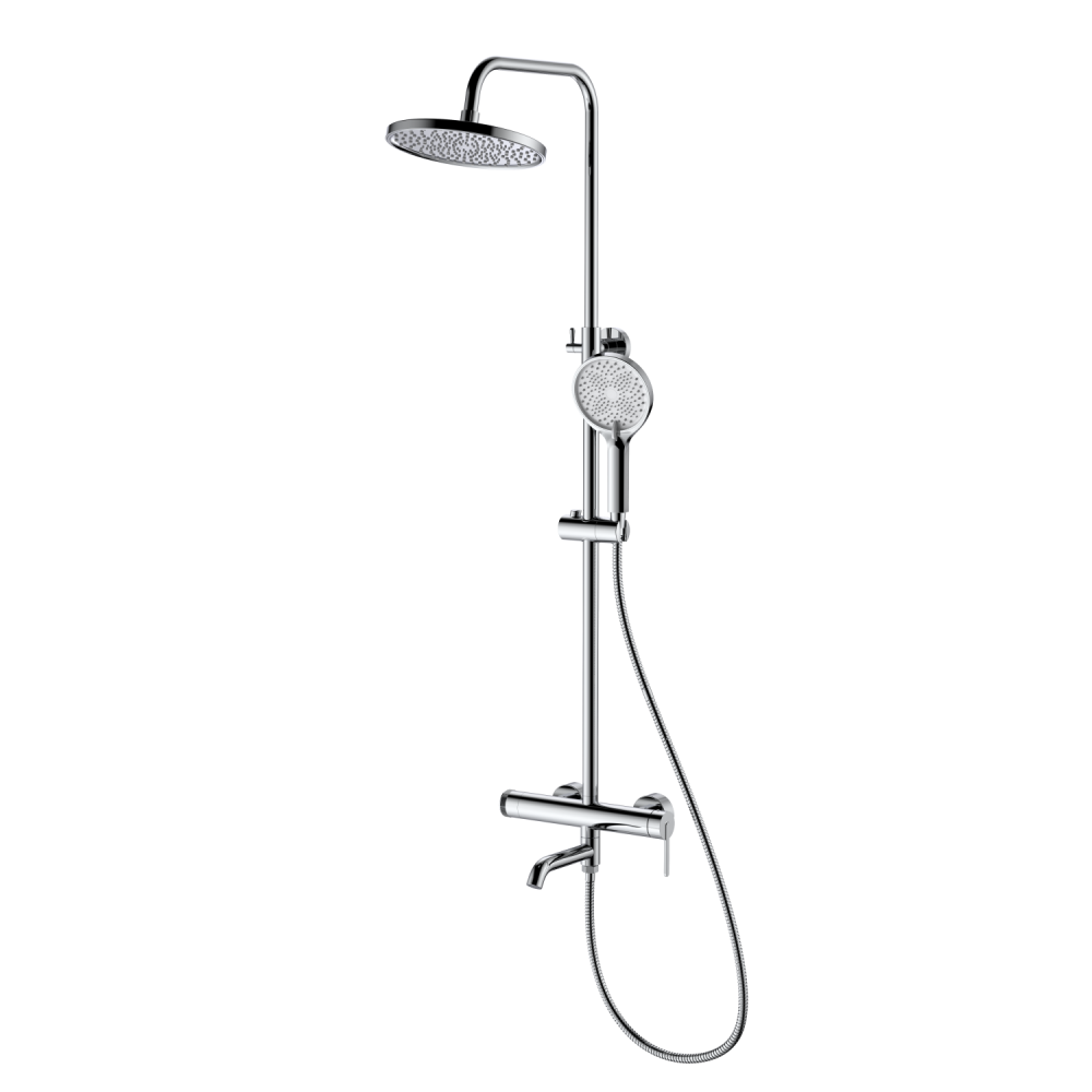 смеситель, эксцентрики-2шт, декоративная шайба (отражатель)-2шт, штанга, крепление для штанги, кронштейн для верхнего душа, шланг душевой 1,5м PVC, лейка душевая 3 режима, держатель душевой лейки, паспорт изделия, брендовый пакет |