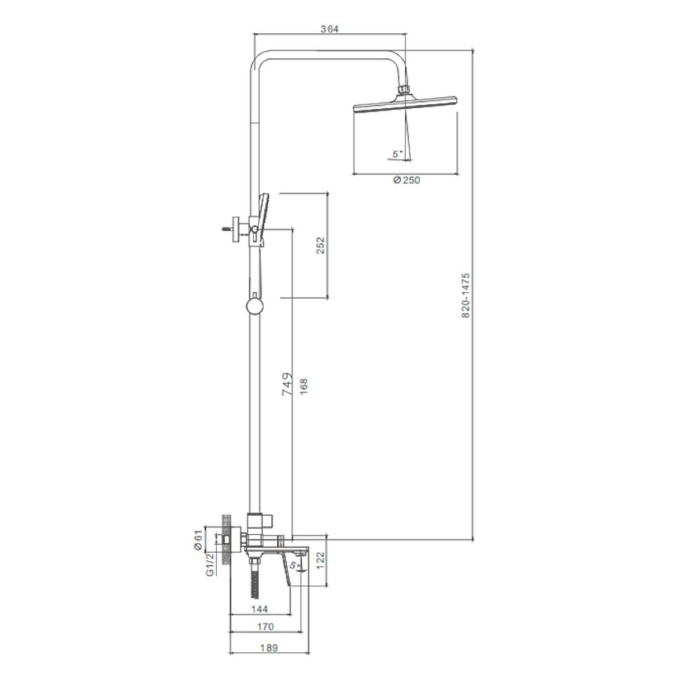 верхний душ, душевая штанга с держателем лейки, ручной душ, смеситель, шланг |