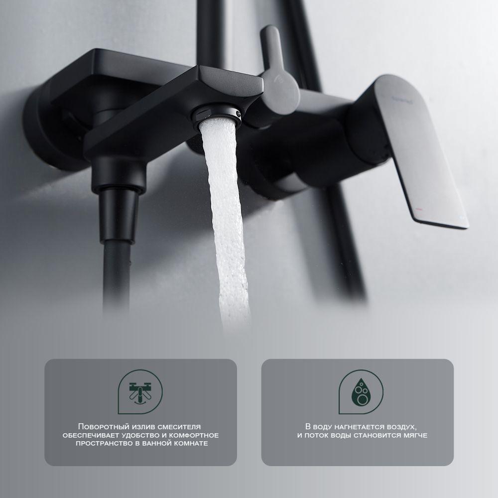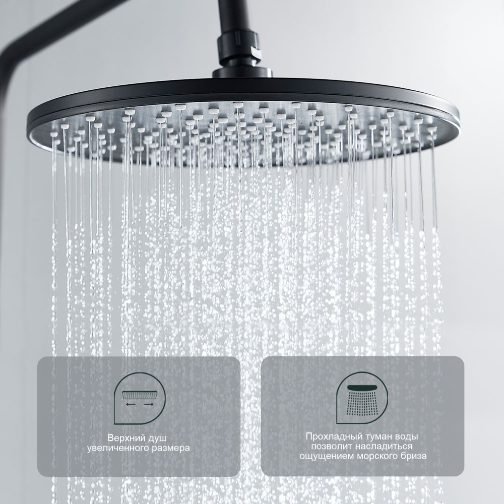 верхний душ, душевая штанга с держателем лейки, ручной душ, смеситель, шланг |