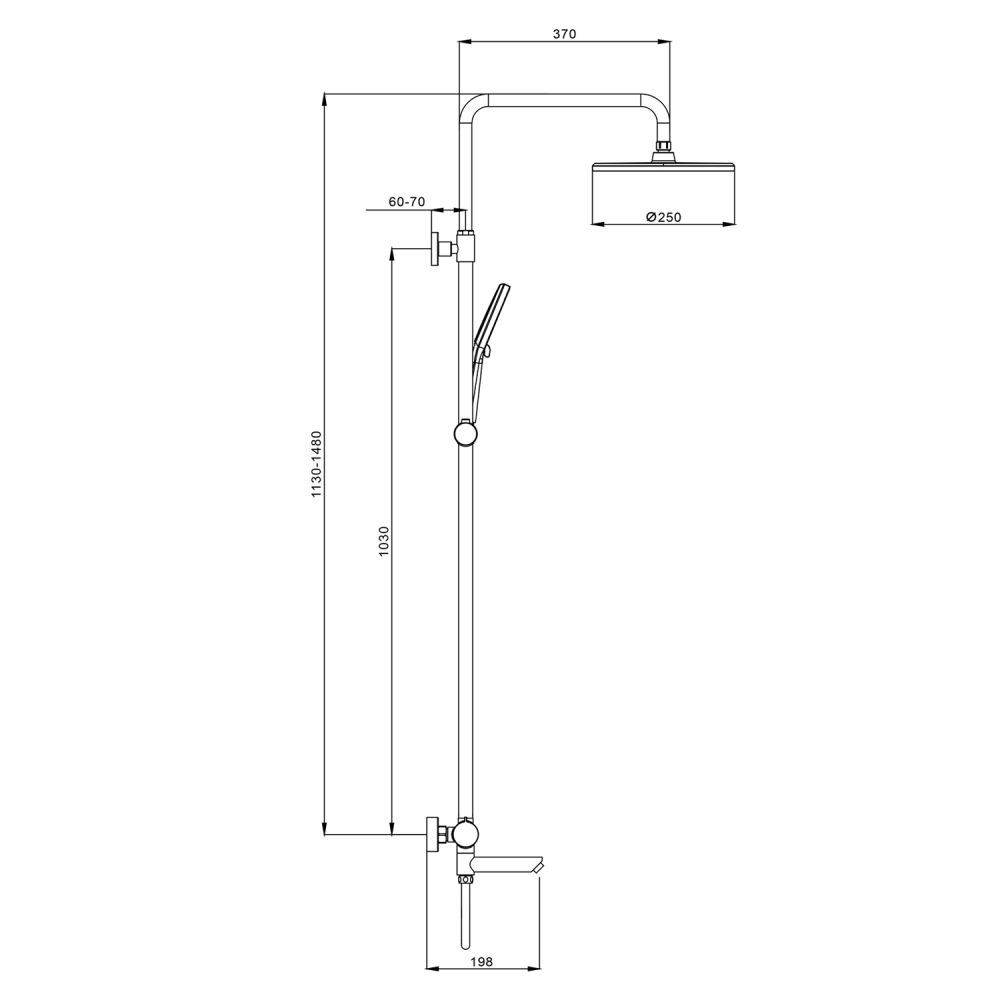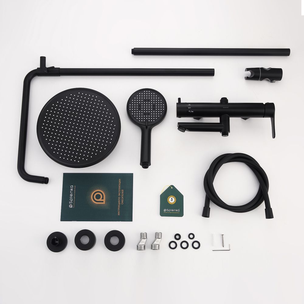 верхний душ, душевая штанга с держателем лейки, ручной душ, смеситель, шланг |