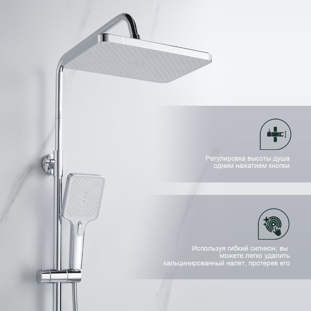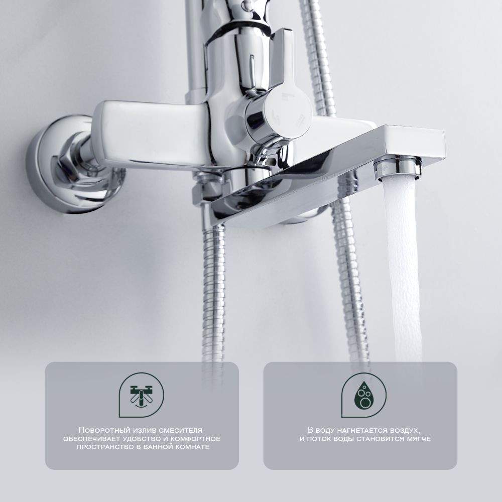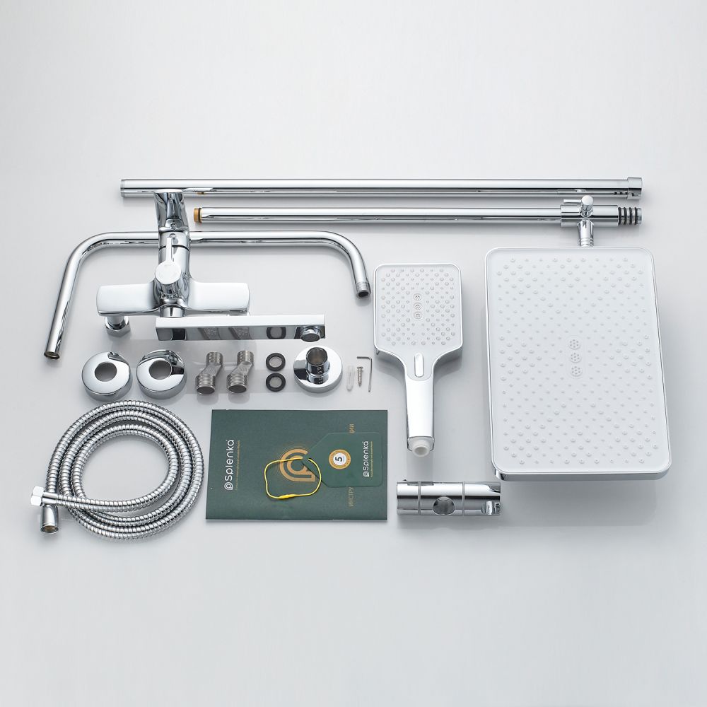 верхний душ, душевая штанга с держателем лейки, ручной душ, смеситель, шланг |