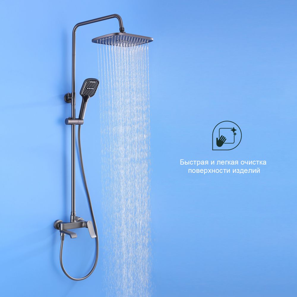 верхний душ, душевая штанга с держателем лейки, ручной душ, смеситель, шланг |