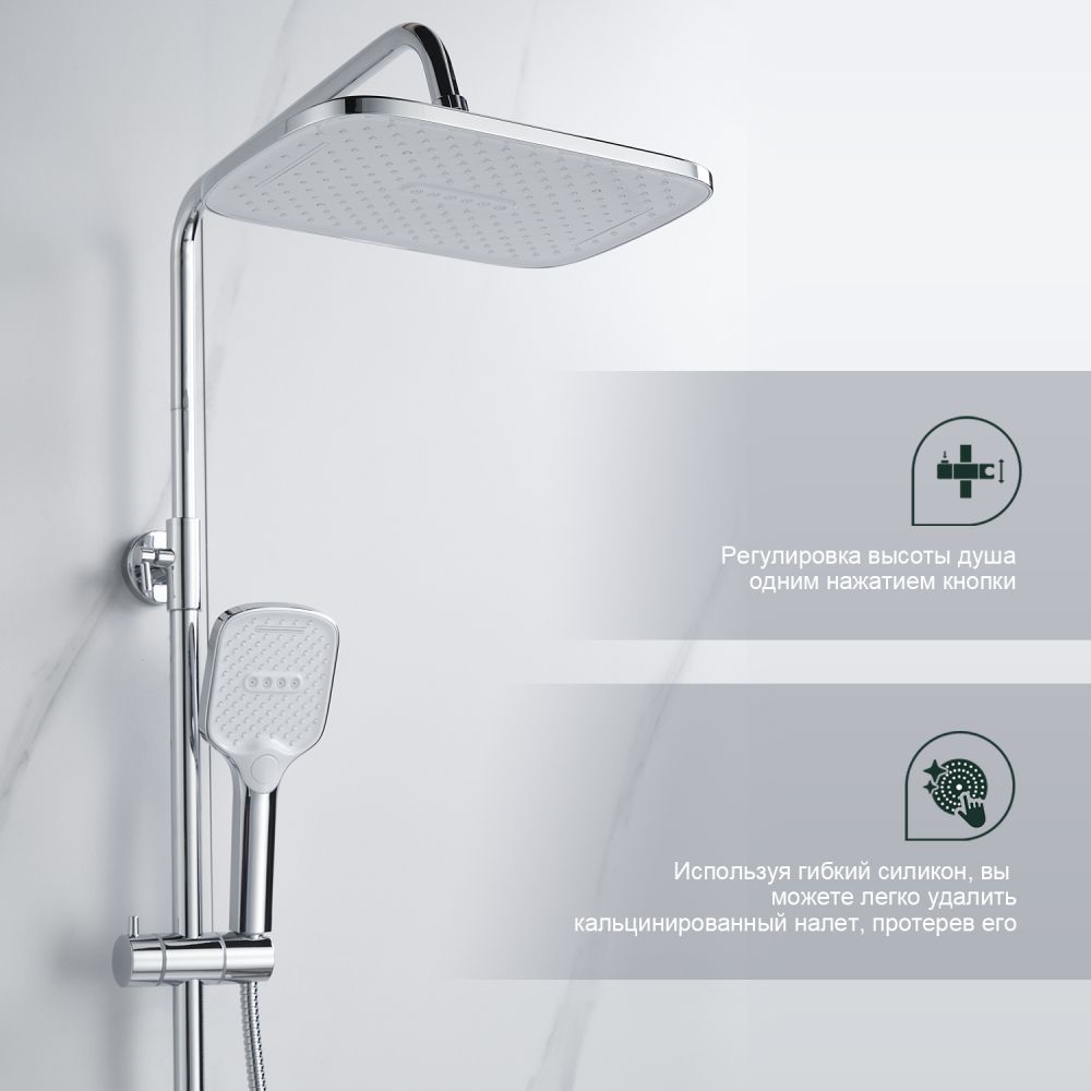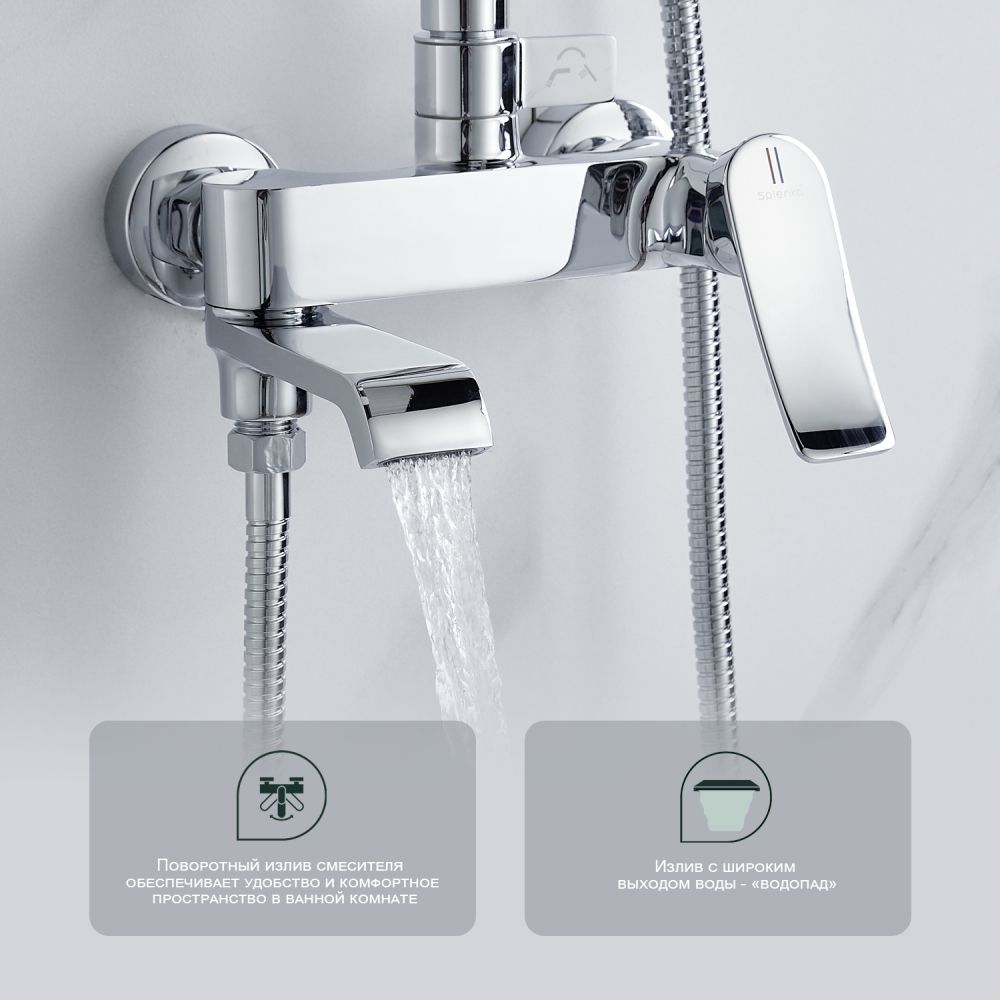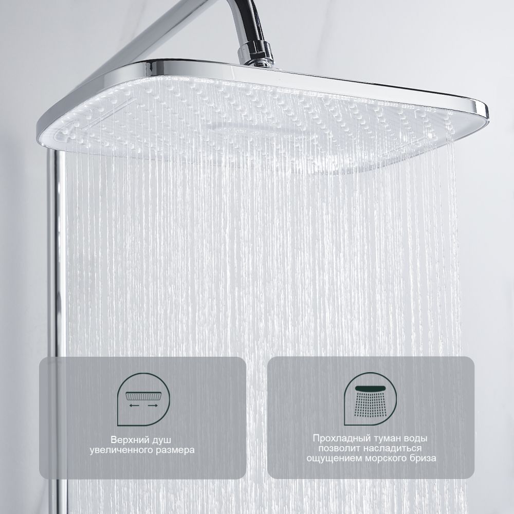 верхний душ, душевая штанга с держателем лейки, ручной душ, смеситель, шланг |