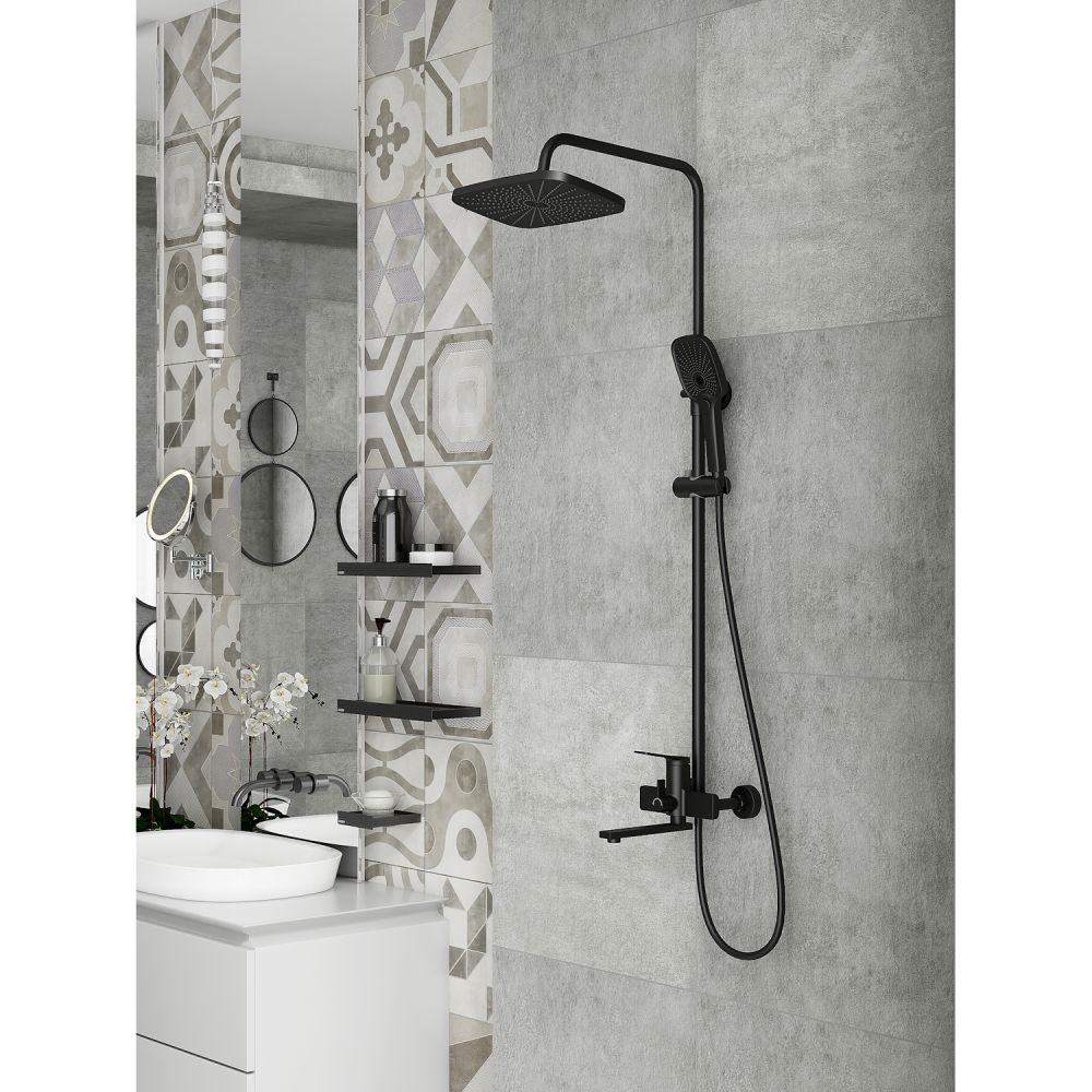 верхний душ, душевая штанга с держателем лейки, ручной душ, смеситель, шланг |