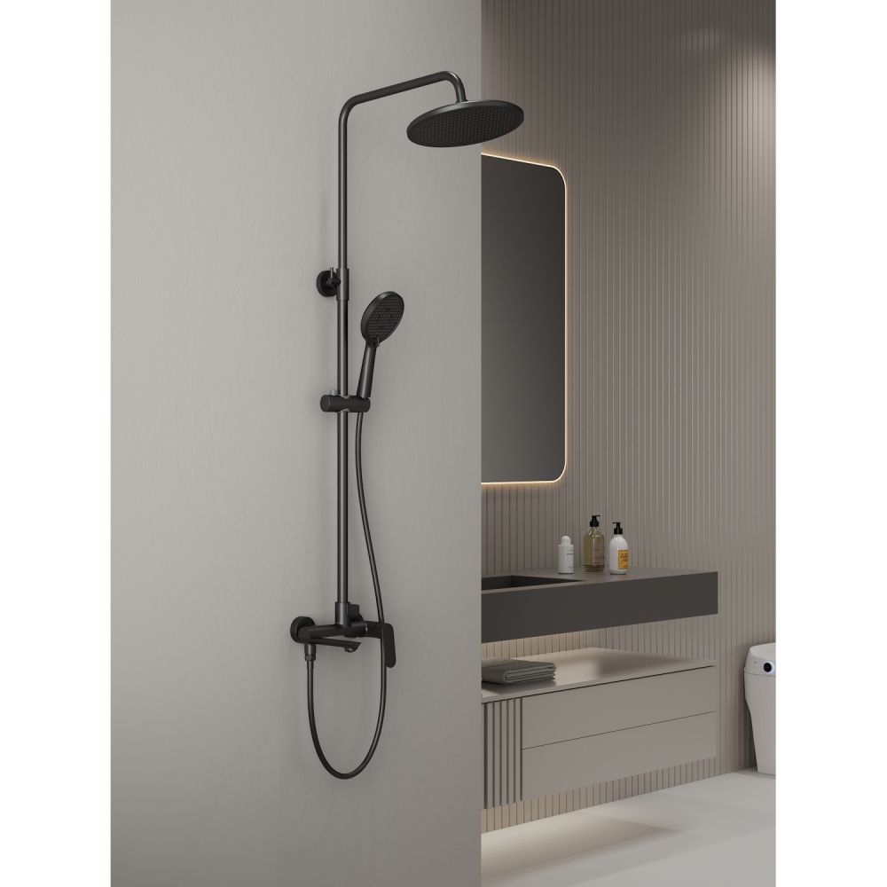 верхний душ, душевая штанга с держателем лейки, ручной душ, смеситель, шланг |