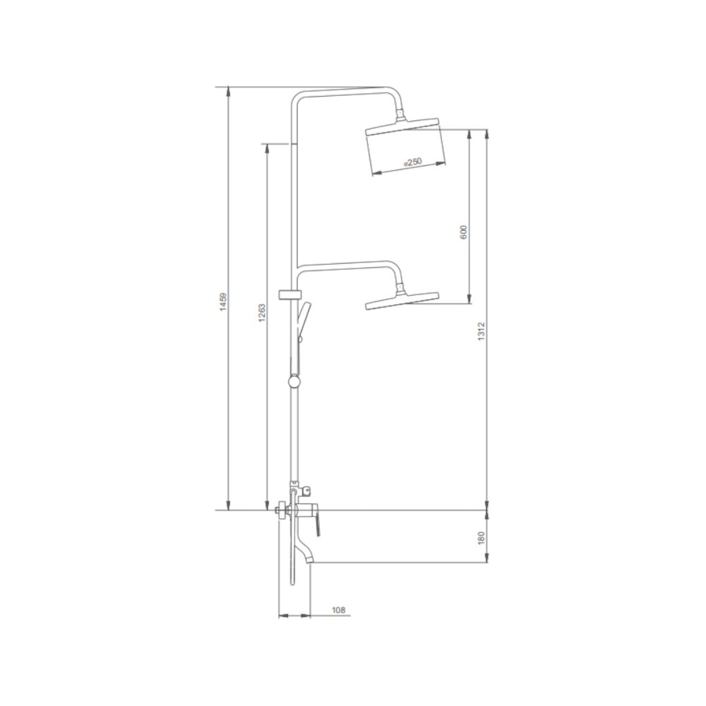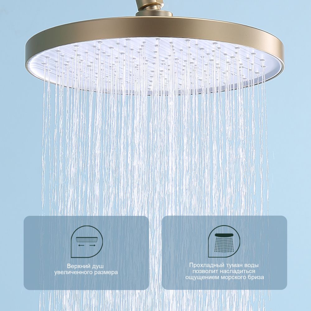 верхний душ, душевая штанга с держателем лейки, ручной душ, смеситель, шланг |