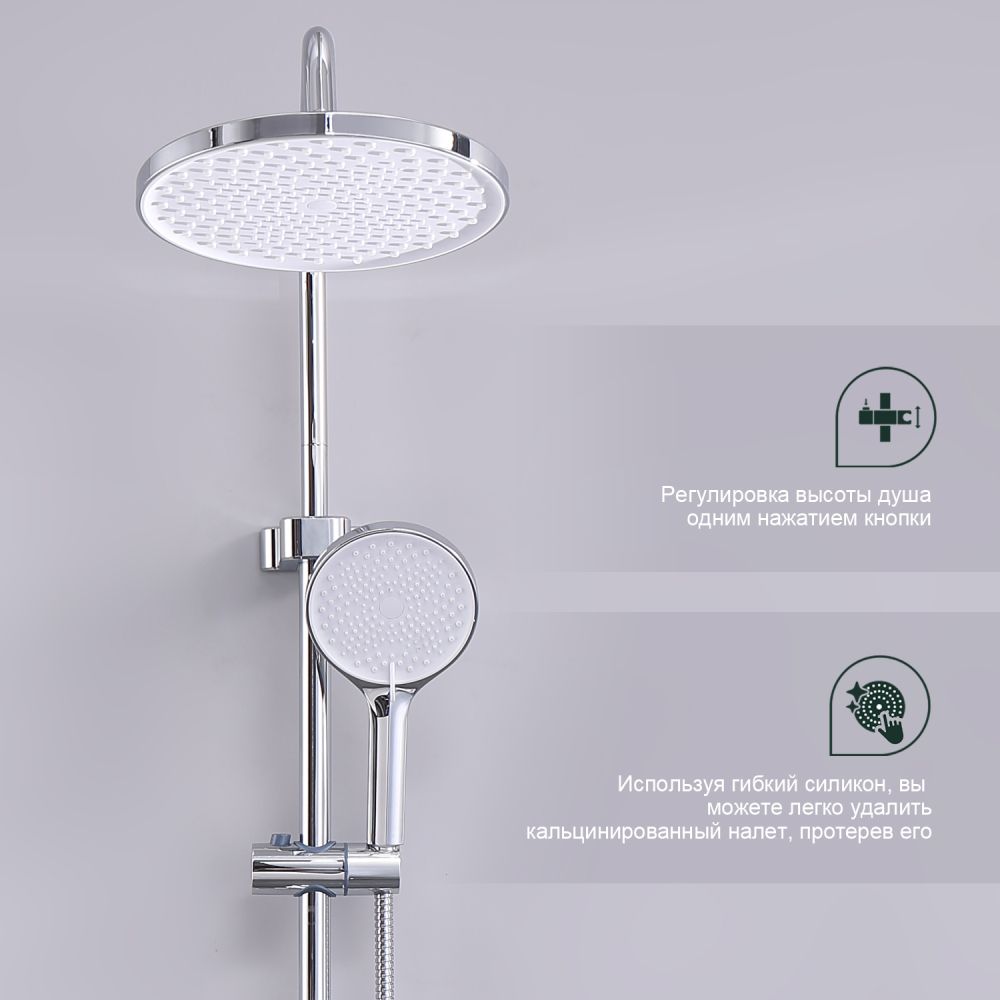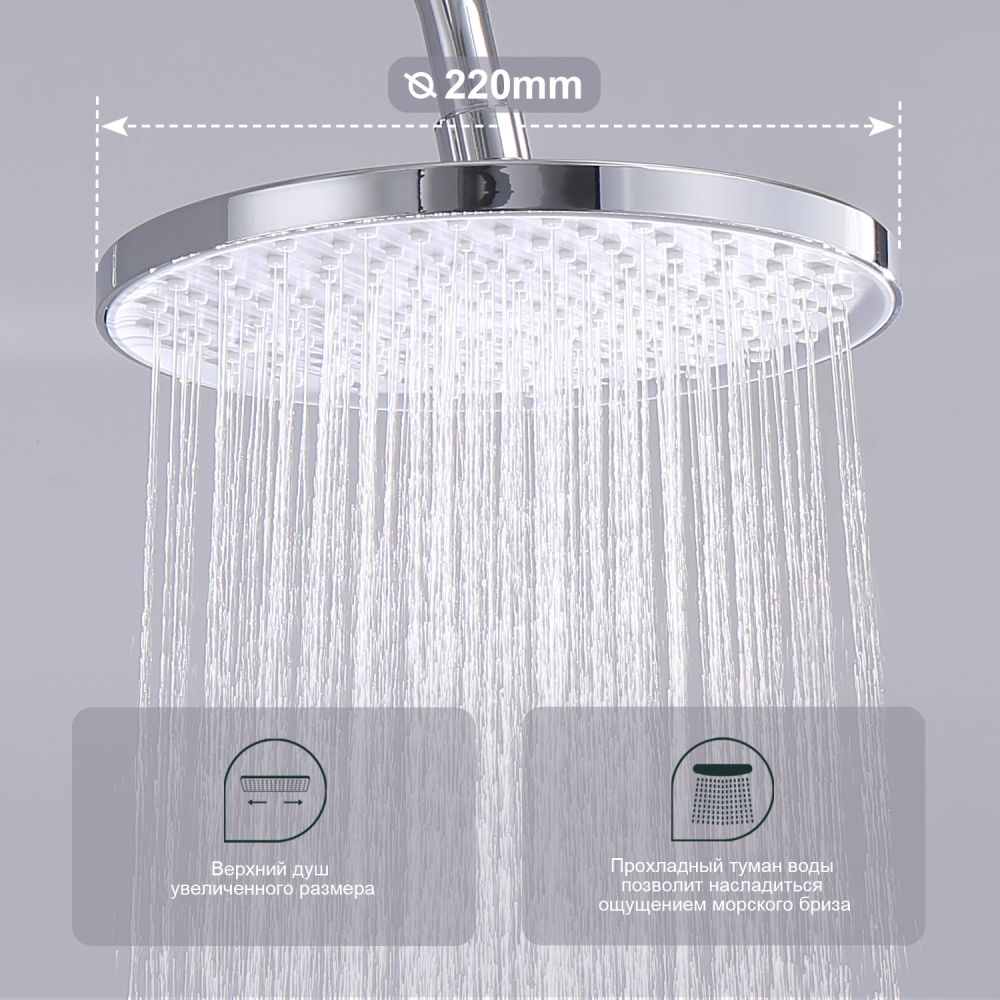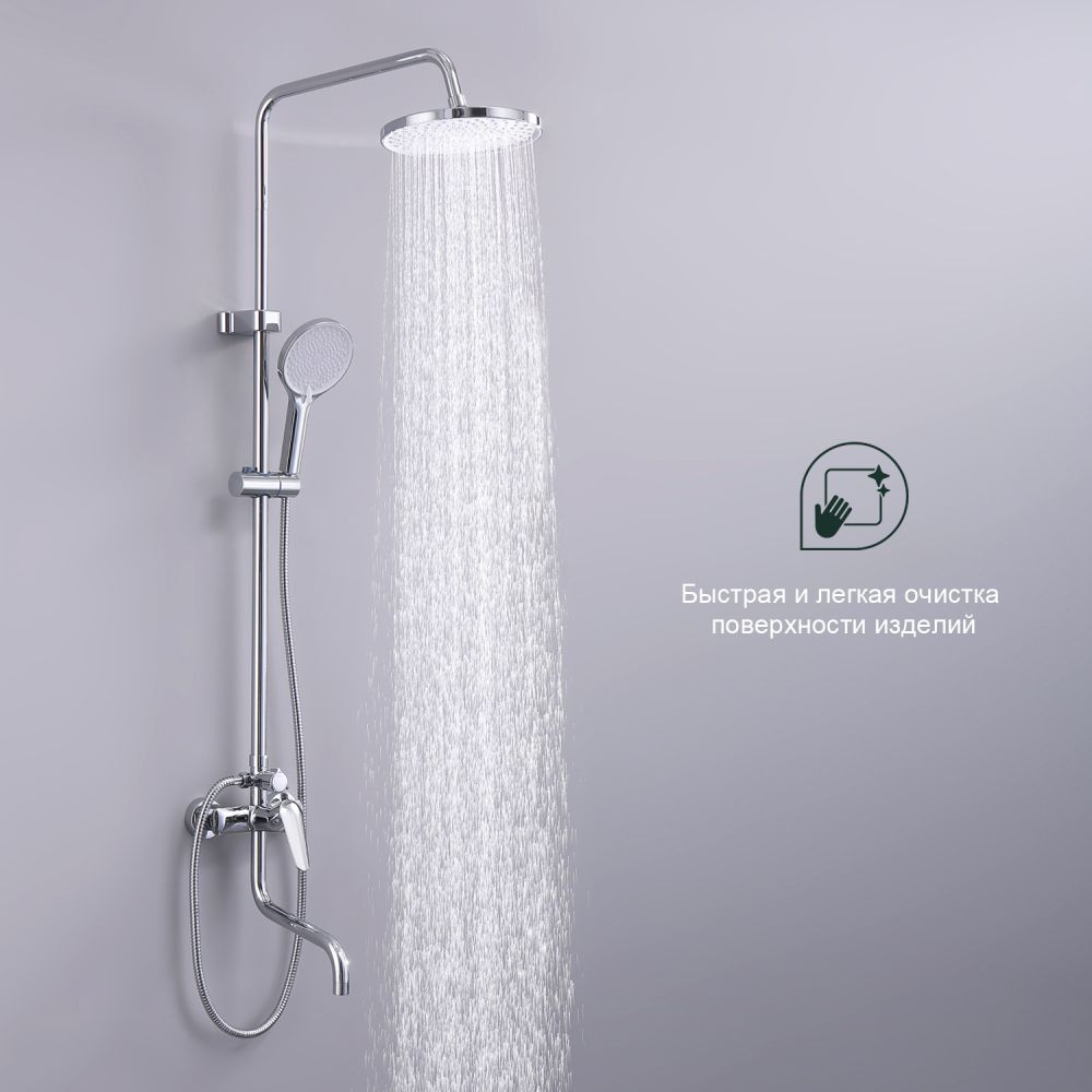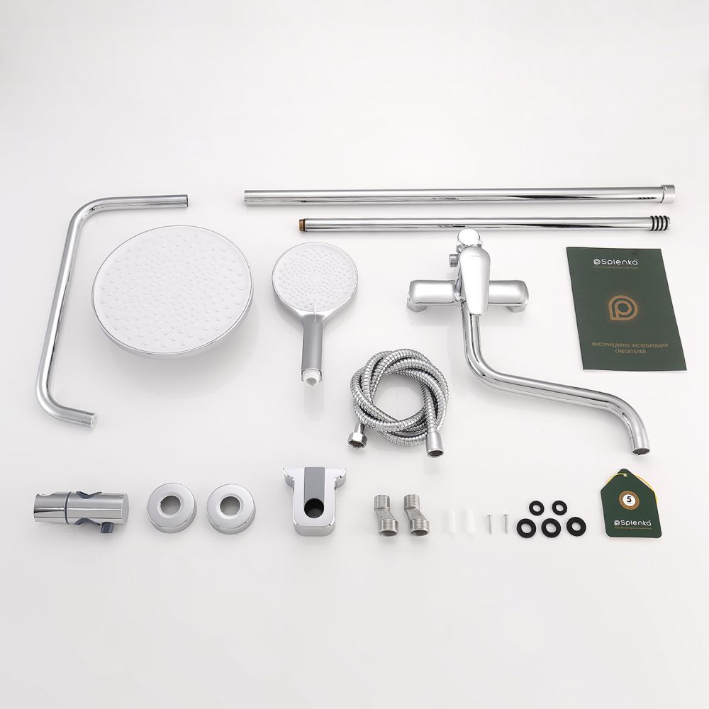 верхний душ, душевая штанга с держателем лейки, ручной душ, смеситель, шланг |