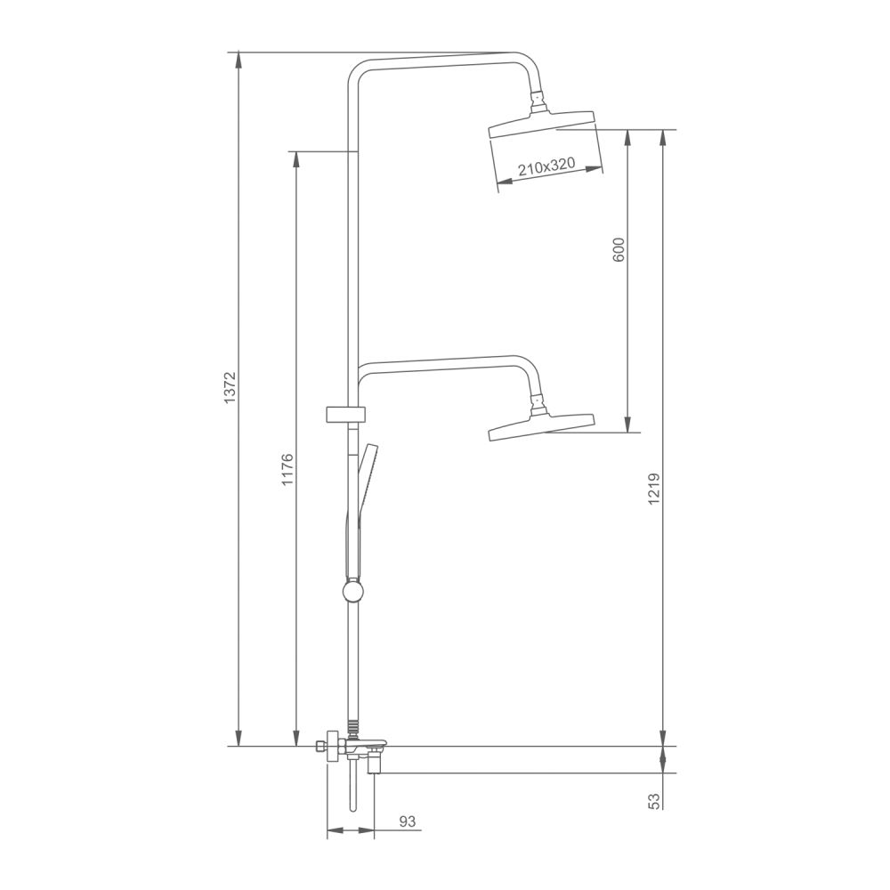 верхний душ, душевая штанга с держателем лейки, ручной душ, смеситель, шланг |