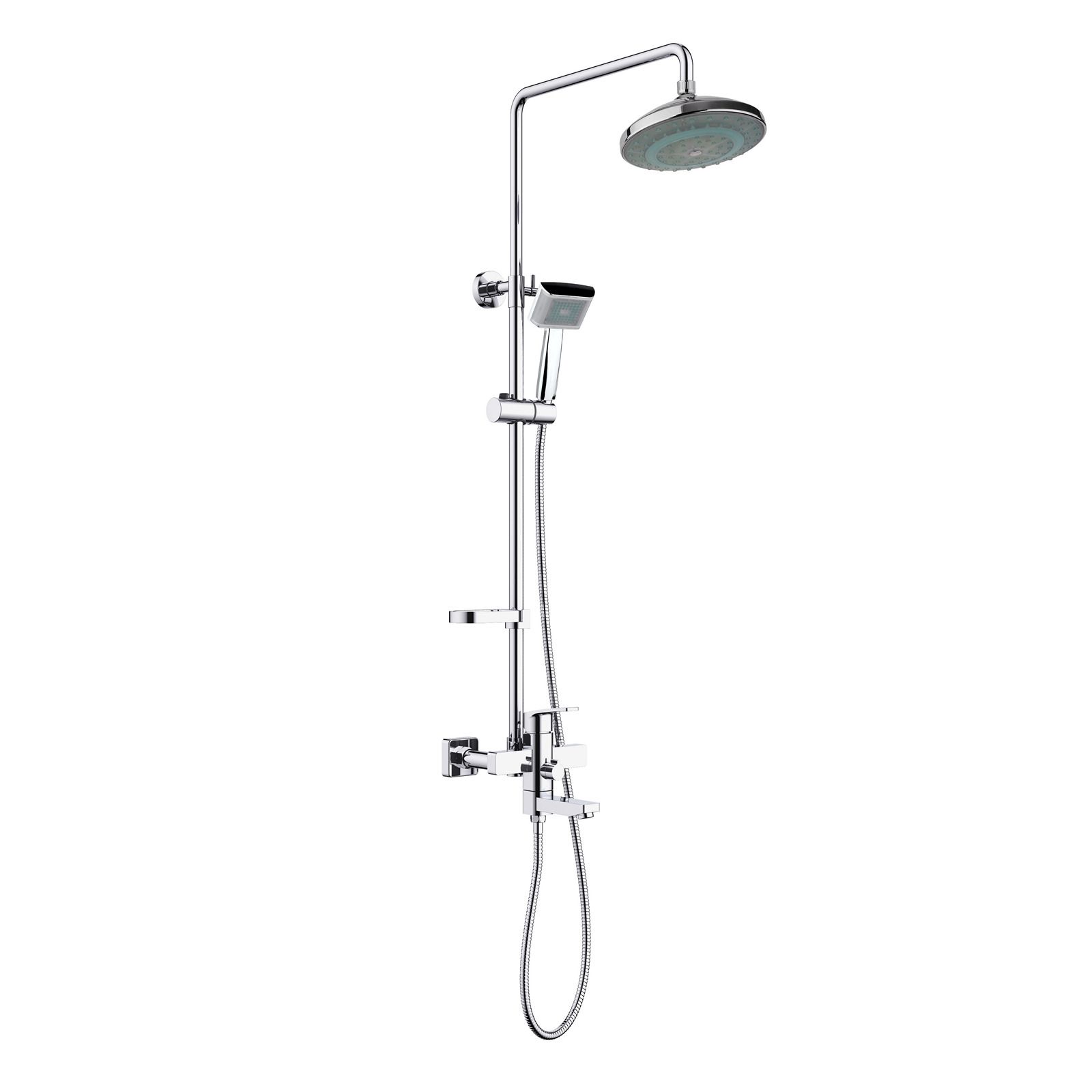 Смеситель - 1 шт. Штанга тропического душа, выдвижная - 1 шт. Держатель ручного душа (пластик) - 1 шт. Ручная лейка (пластик) - 1 шт. Тропический душ (пластик) - 1 шт. Шланг душа 1,5 м - 1 шт. Эксцентриковые соединители - 2 шт. Декоративные отражатели - 2 шт. Крепеж к стене с декоративным отражателем - 1 шт. Инструкция - 1 шт. |