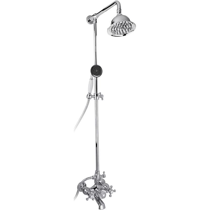 Душевая система Timo Nelson SX-1190 с круглым верхним душем, с двумя рукоятками и смесителем с изливом. Решение для ванной в стиле ретро. Хорошо будет смотреться и в интерьере в классической стилистике.