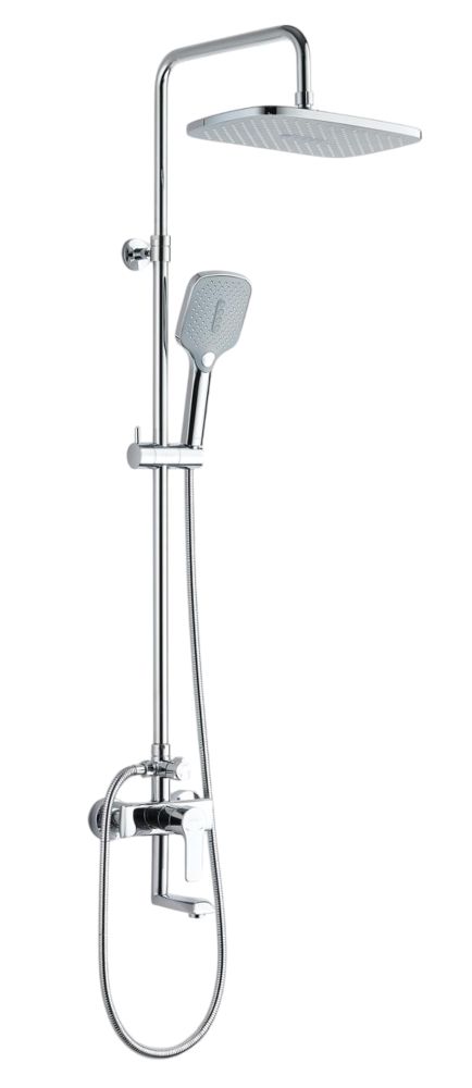 Душевая система со смесителем для ванны с изливом. Выдвижная телескопическая стойка (нерж.сталь, хром): высота функциональная 700-1300 мм.