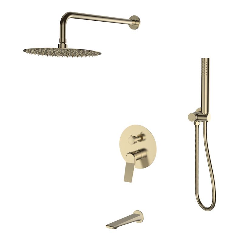 Шикарное золотое покрытие и корпус из латуни придают ванной изысканный облик. Стационарный излив и фиксируемый дивертор обеспечивают удобство управления. Металлический шланг и функция легкой очистки ручного и верхнего душа гарантируют комфорт и долговечность.