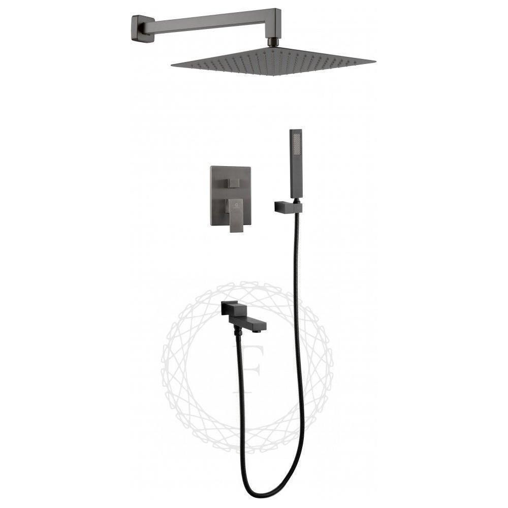 смеситель, внутренняя часть, шланговое подключение с изливом, держатель душевой лейки, лейка, душевой шланг, верхний душ с кронштейном |