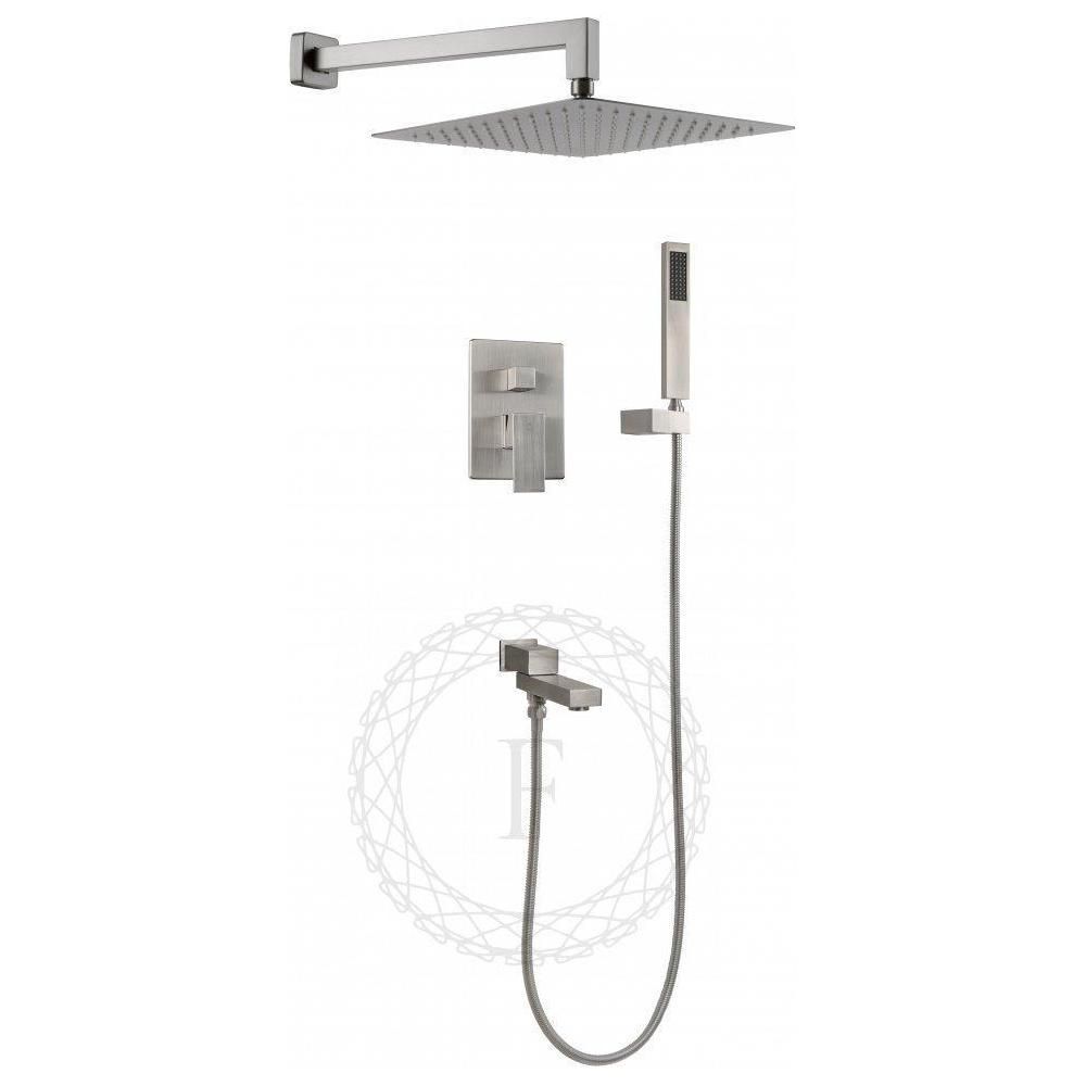смеситель, внутренняя часть, шланговое подключение с изливом, держатель душевой лейки, лейка, душевой шланг, верхний душ с кронштейном |
