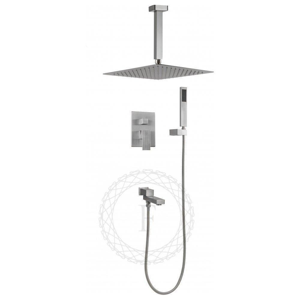 смеситель, внутренняя часть, шланговое подключение с изливом, держатель душевой лейки, лейка, душевой шланг, верхний душ с кронштейном |
