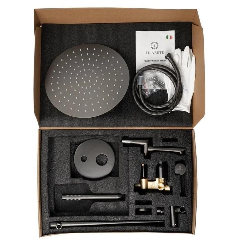 смеситель, внутренняя часть, шланговое подключение с изливом, держатель душевой лейки, лейка, душевой шланг, верхний душ с кронштейном |