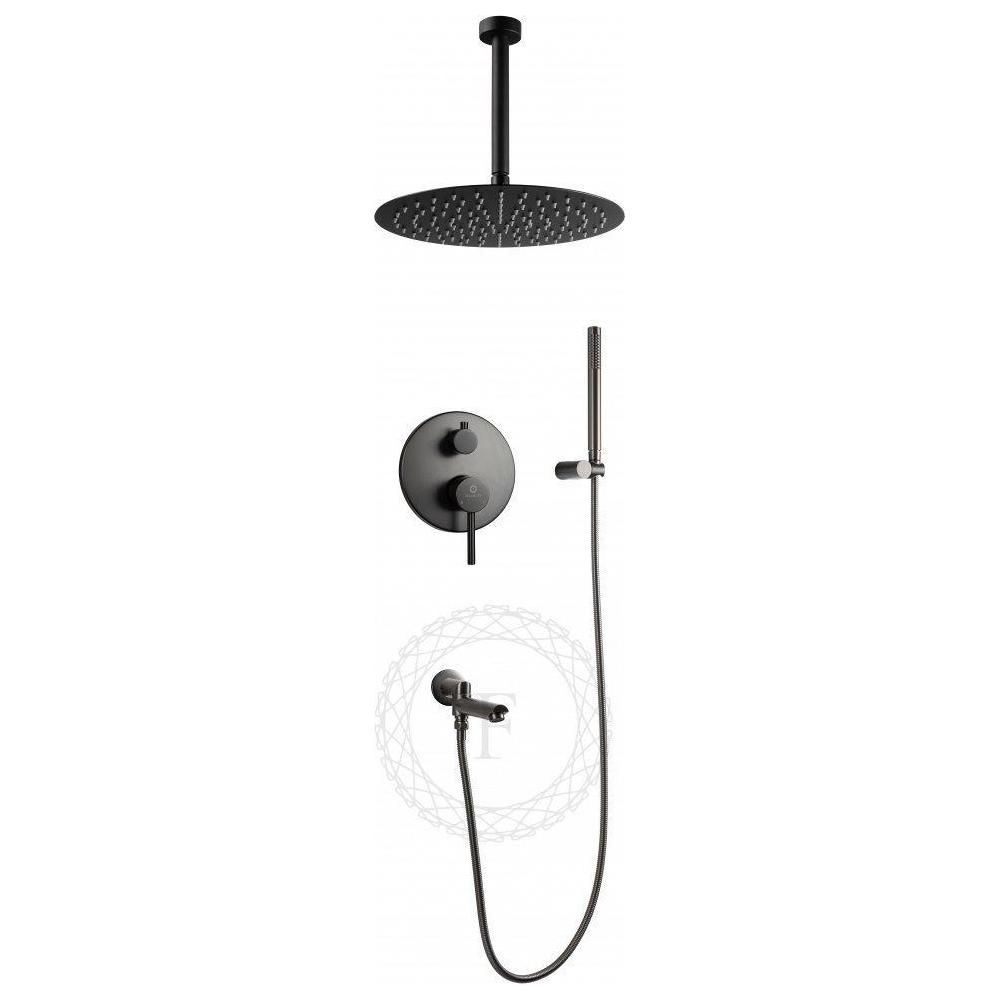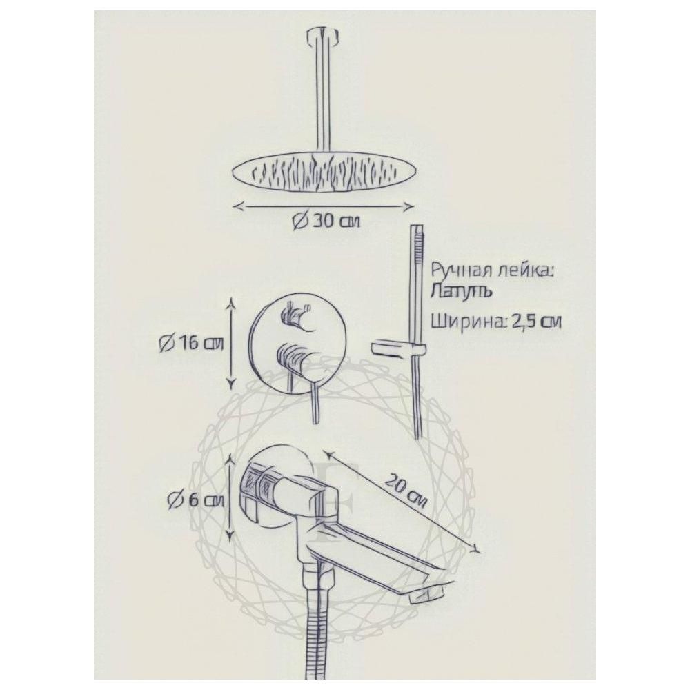 смеситель, внутренняя часть, шланговое подключение с изливом, держатель душевой лейки, лейка, душевой шланг, верхний душ с кронштейном |