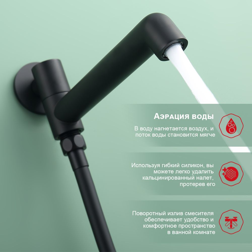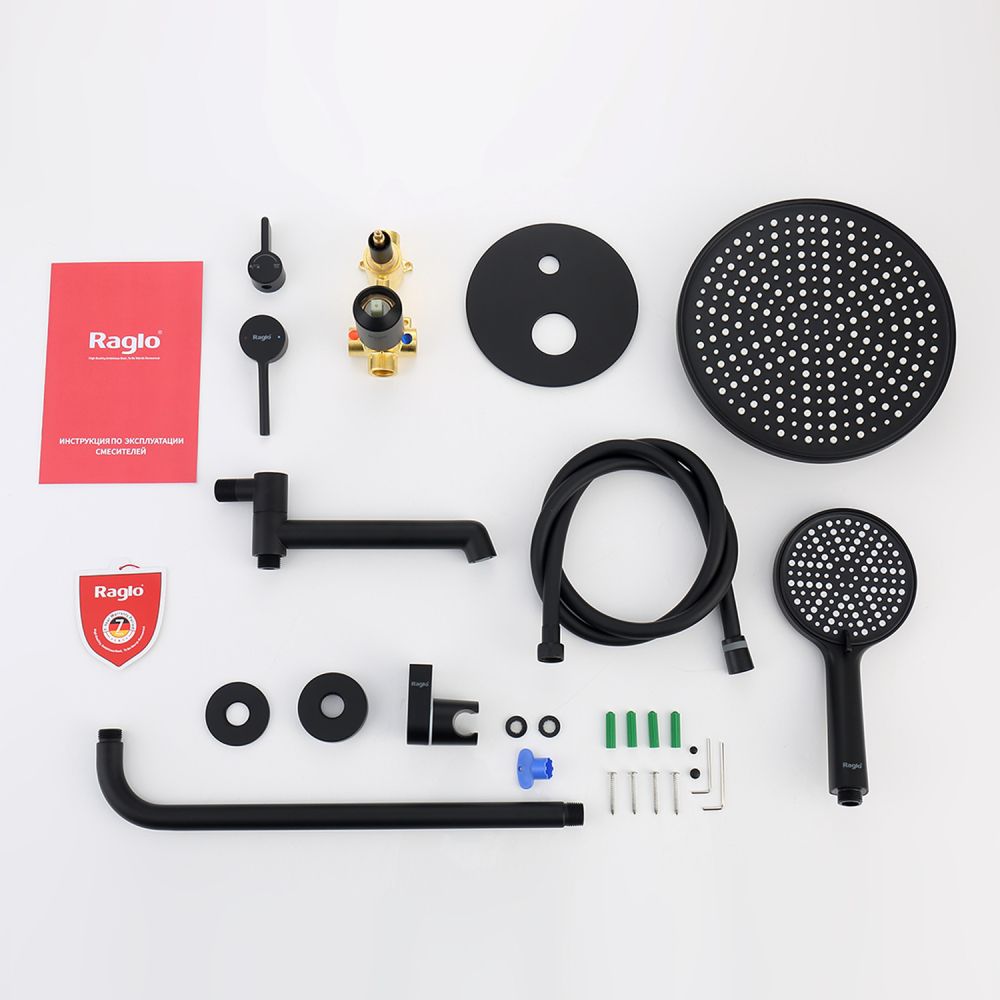 смеситель, внутренняя часть, шланговое подключение с держателем лейки, душевой шланг, верхний душ с кронштейном, излив |
