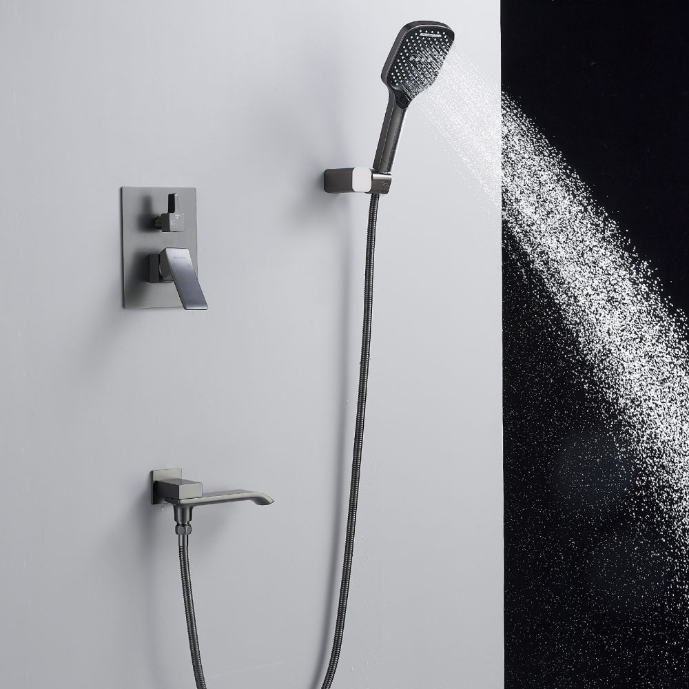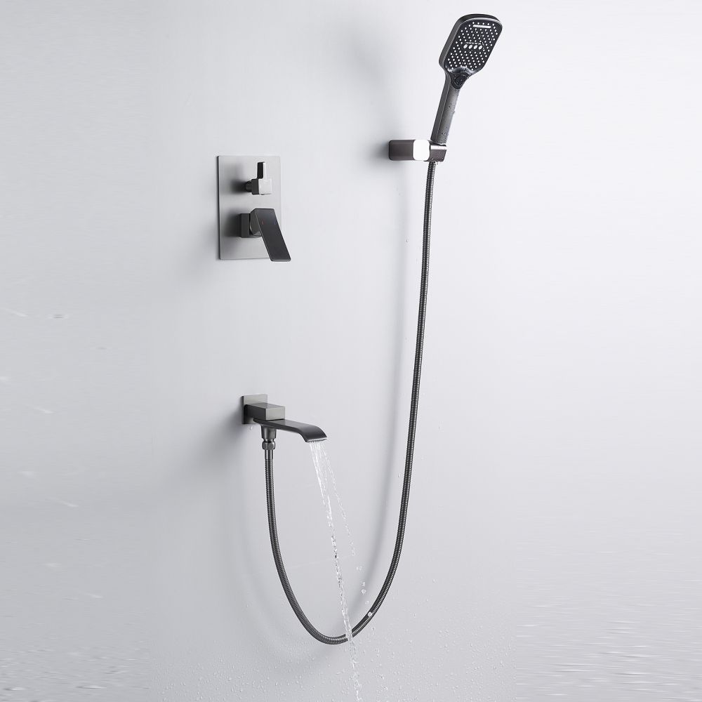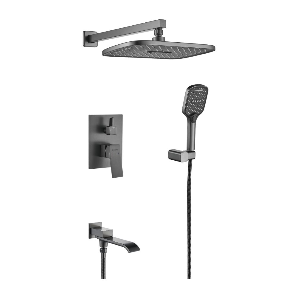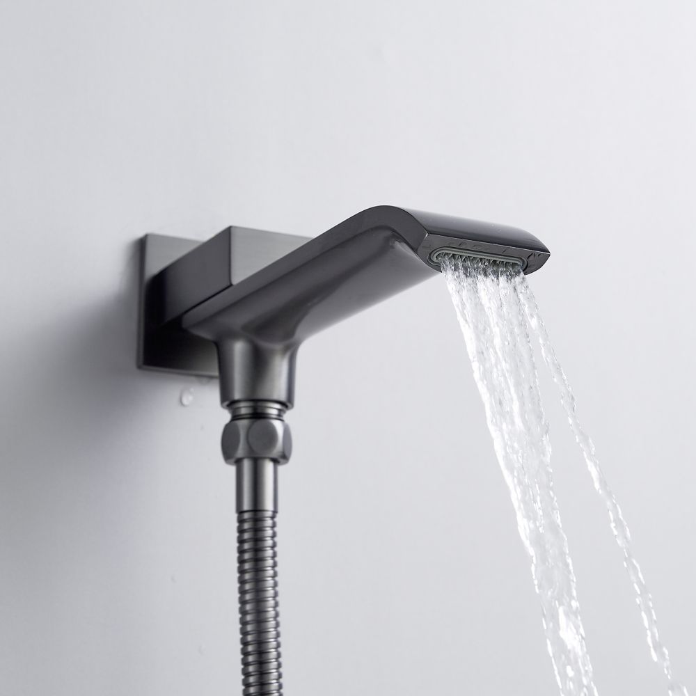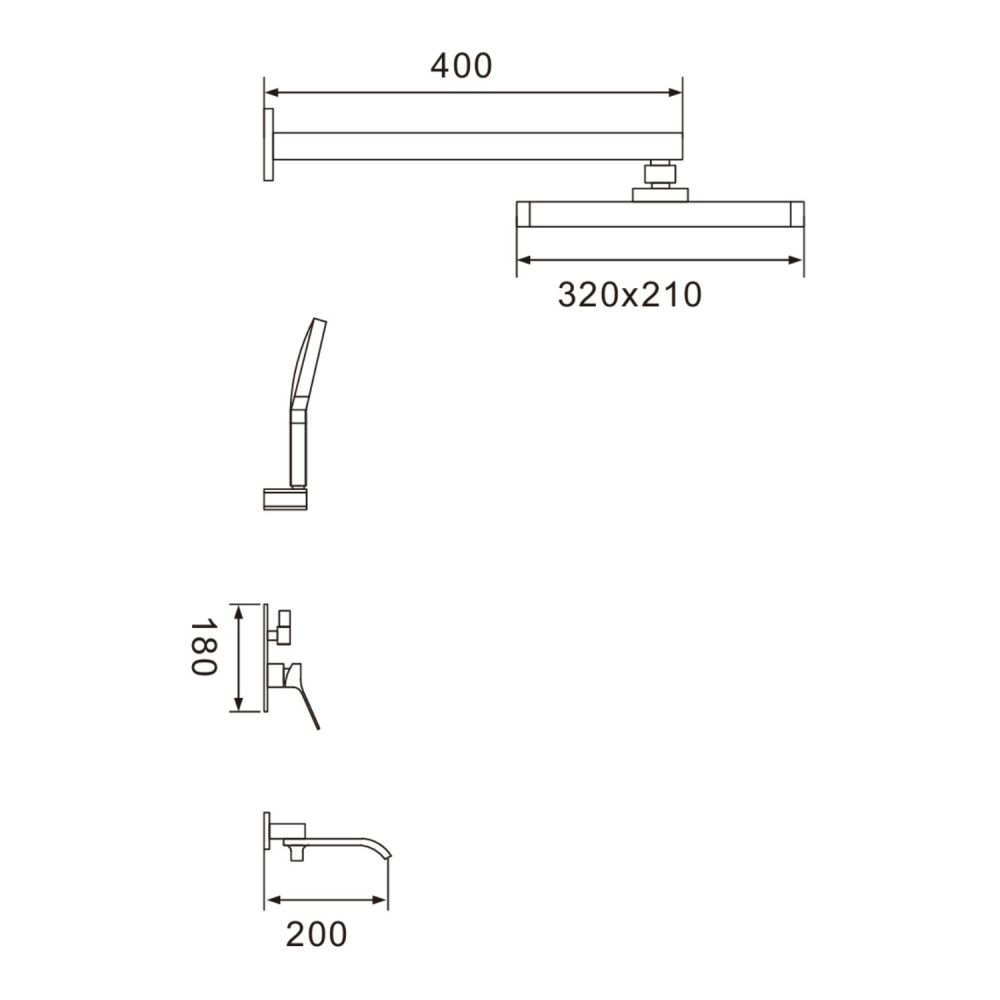 смеситель, внутренняя часть, шланговое подключение с изливом, верхний душ с настенным кронштейном, душевая лейка, настенный держатель лейки, душевой шланг |